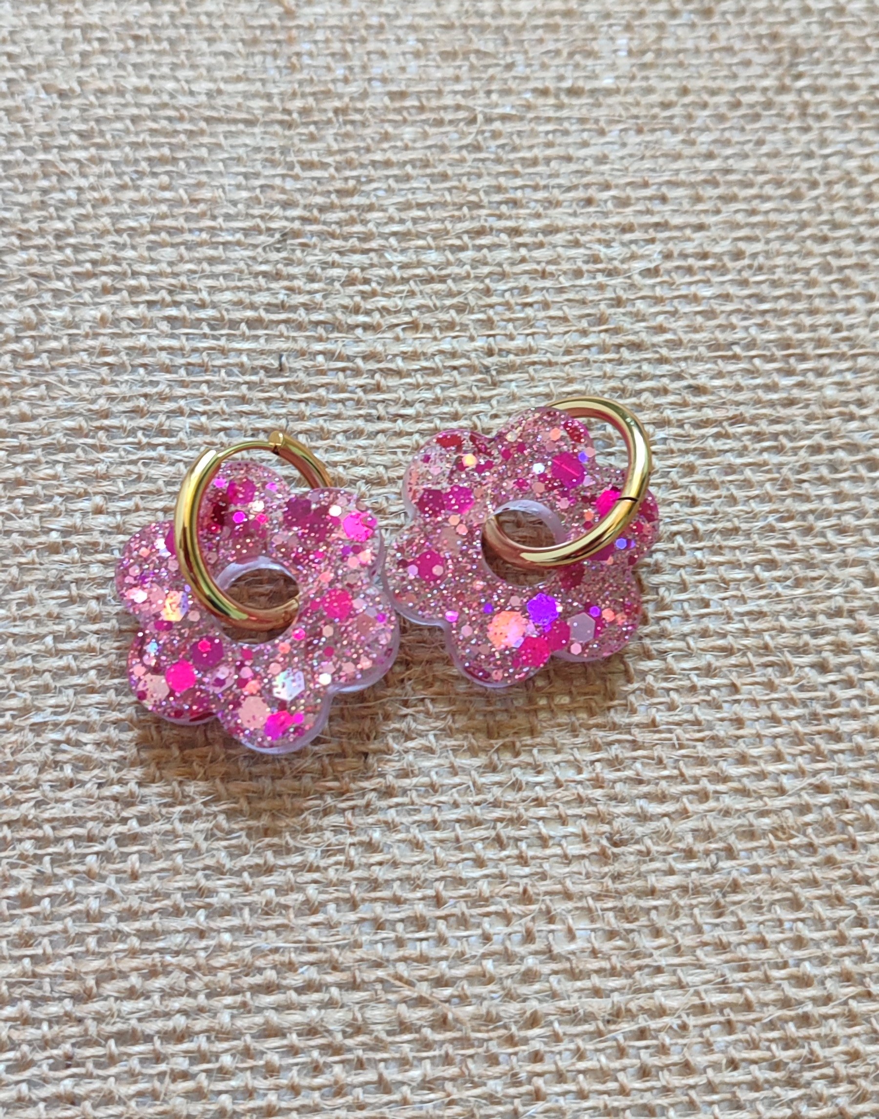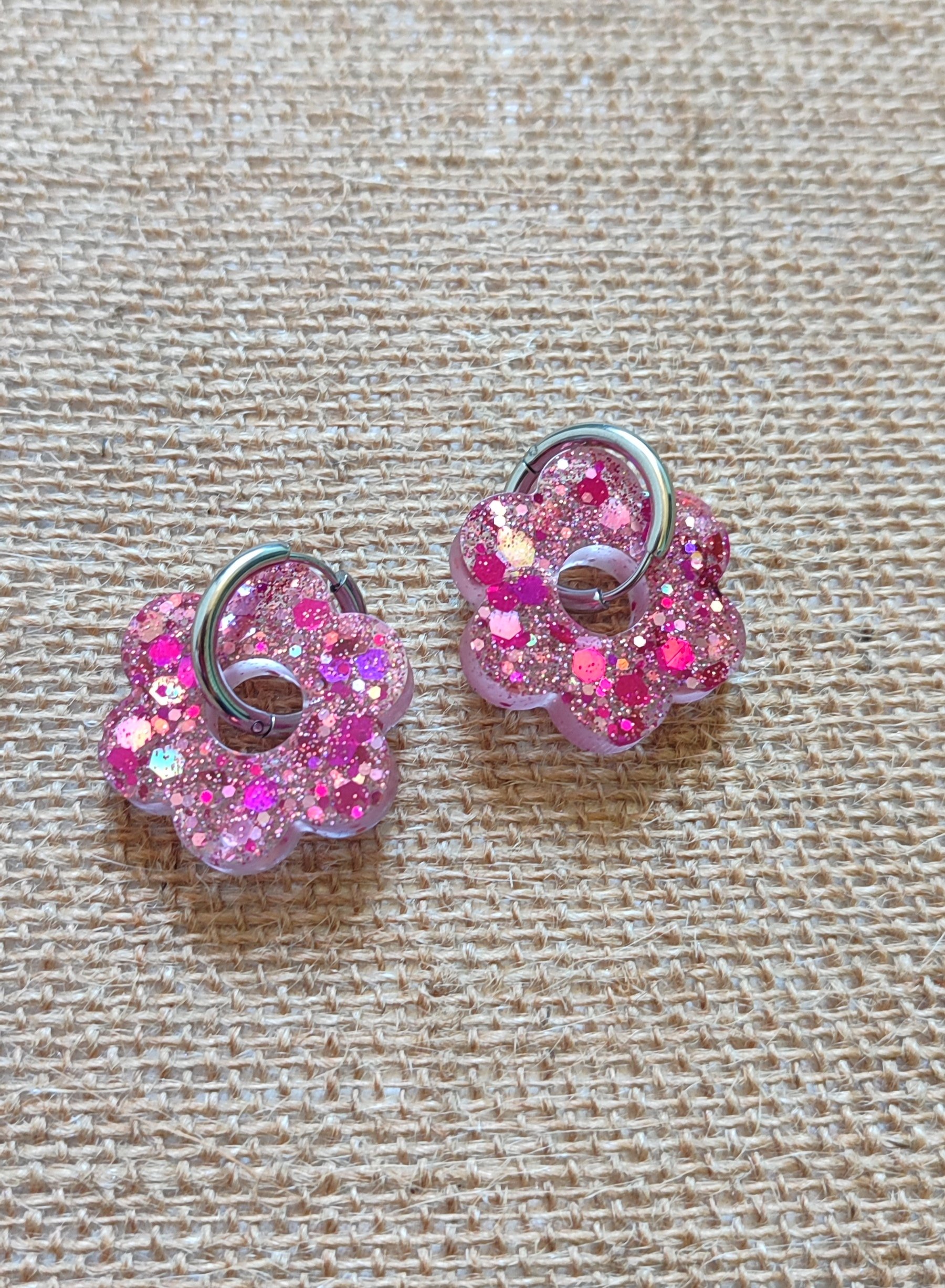 Paire de boucles d’oreilles flowers créoles fleurs en résine et acier inoxydable