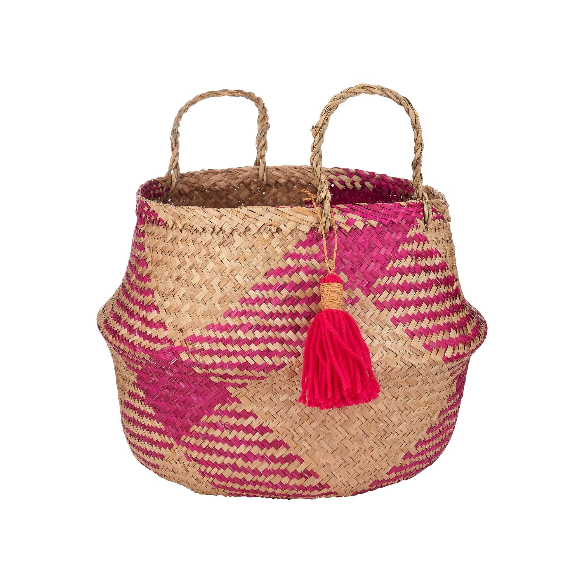 Panier tressé graphique fuchsia