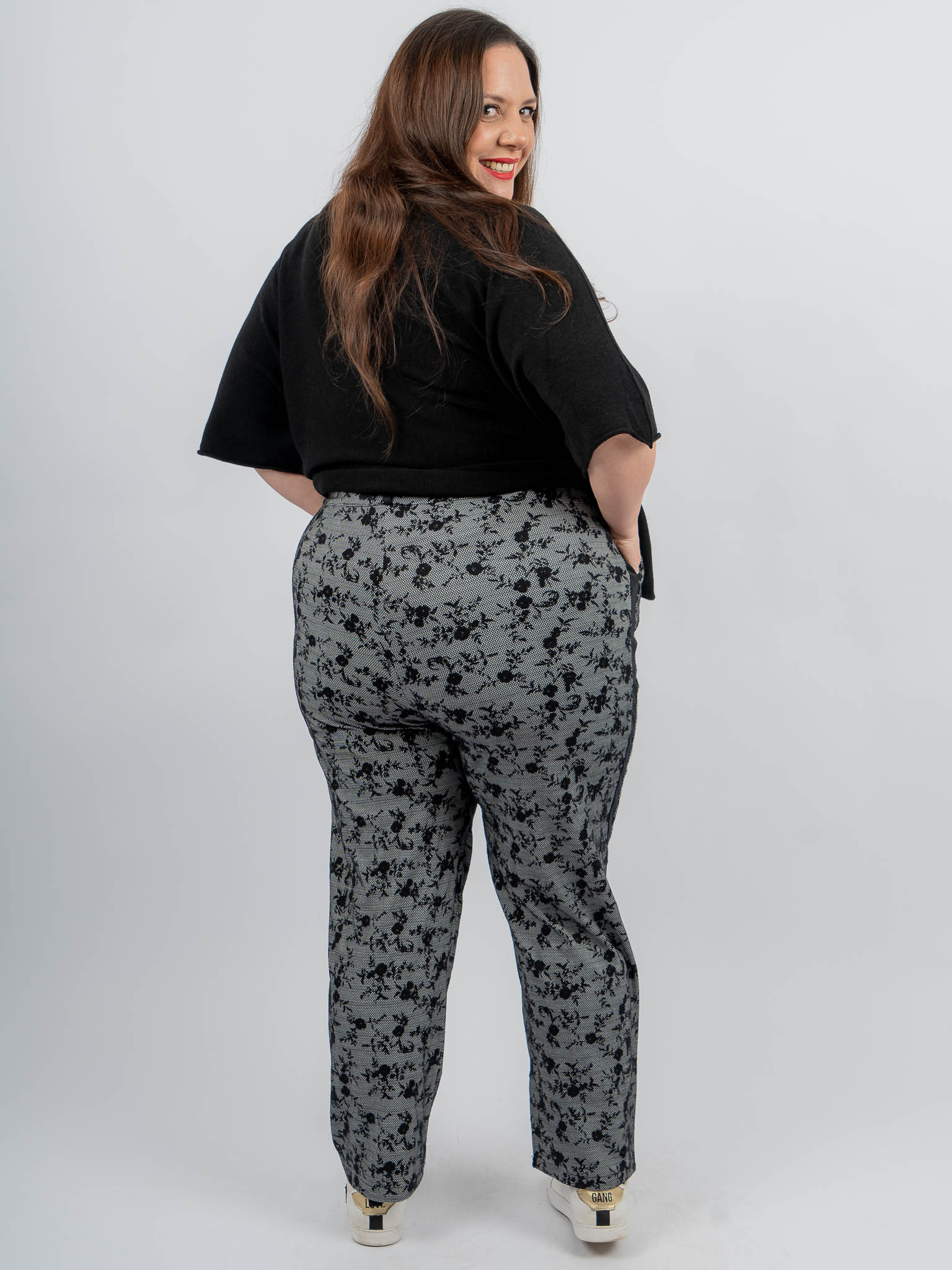 - Le modèle mesure 1m72 et porte une taille 50/52