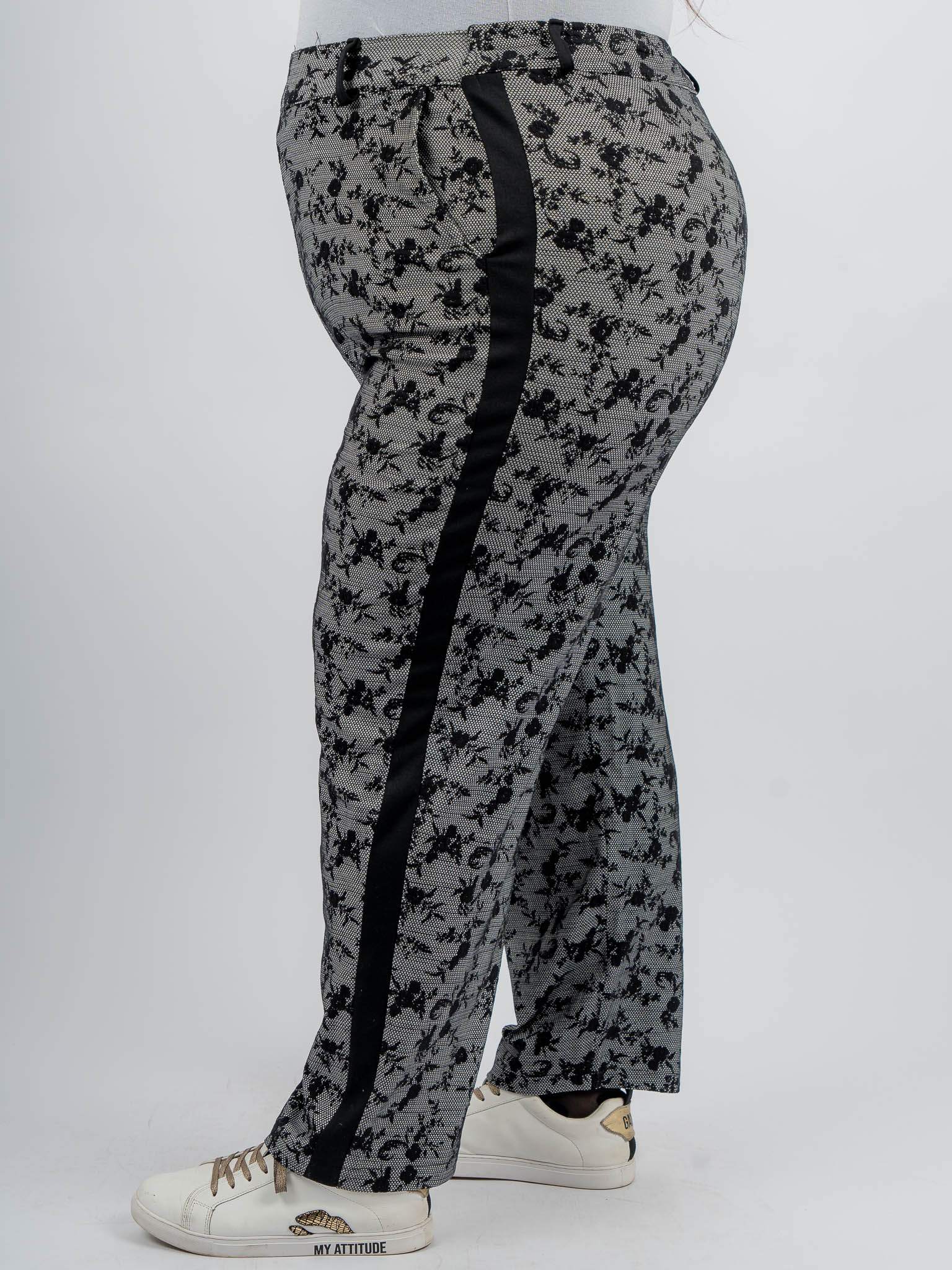 Pantalon façon dentelle à bandes contrastées
