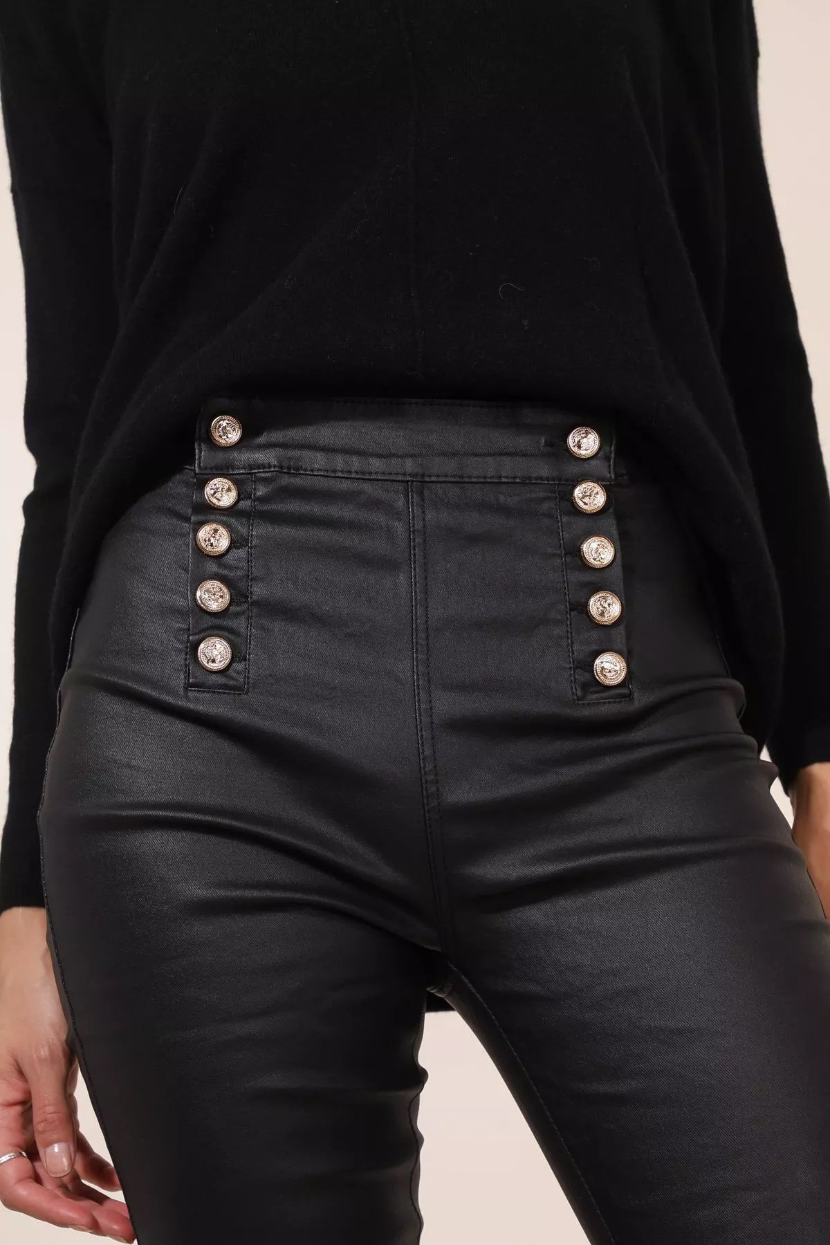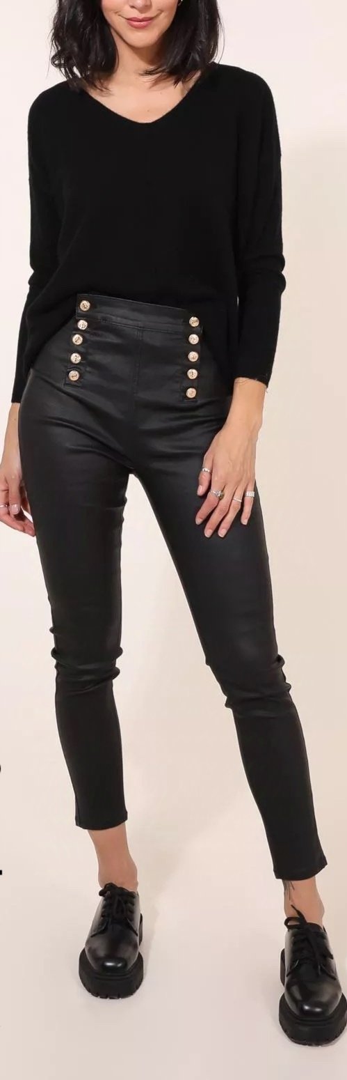 Pantalon jeans noir boutonné simili