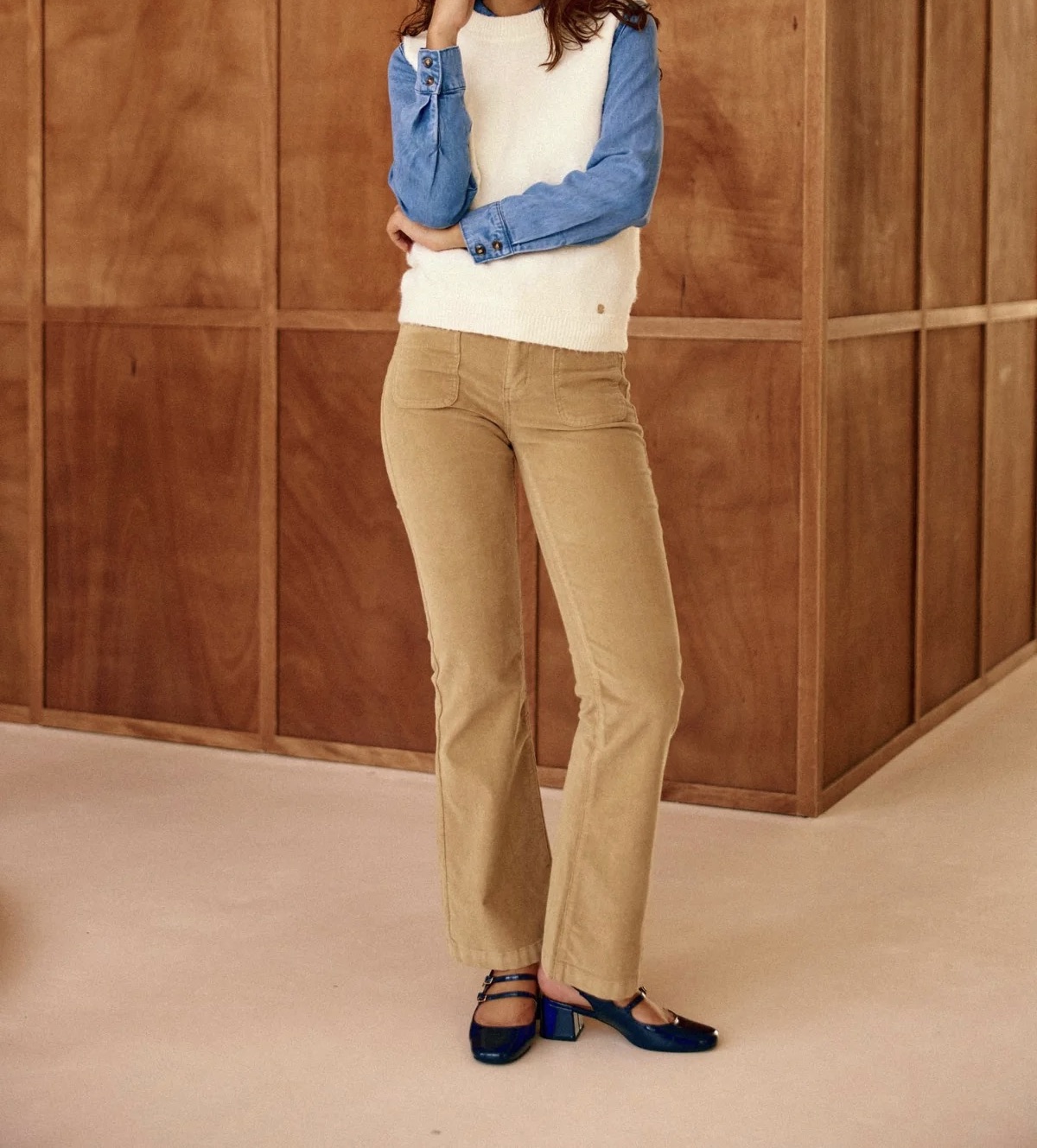 Notre mythique pantalon Lana, édition velours beige ultra chic. Vos jambes s’allongent, c’est magique !