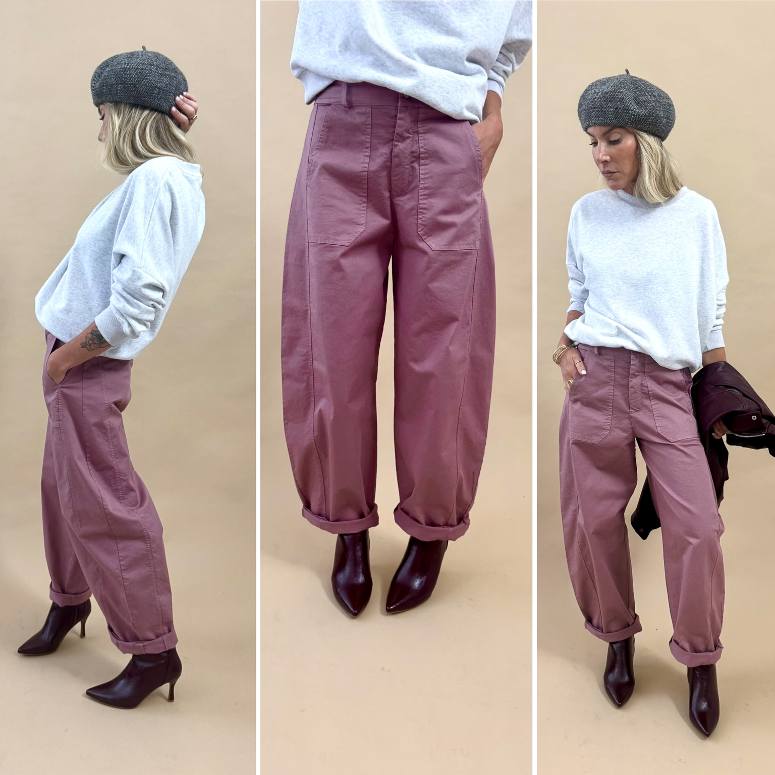 Le pantalon ballon ceinturé peut se retrousser pour un style décontracté pour un look ultra tendance !