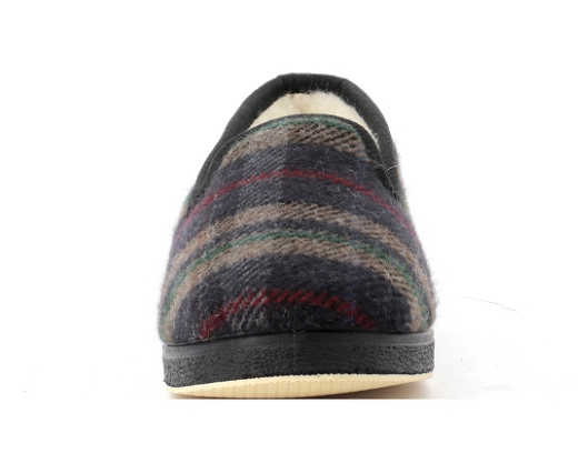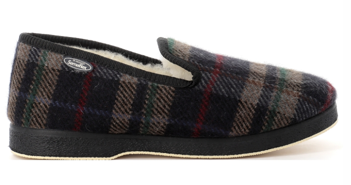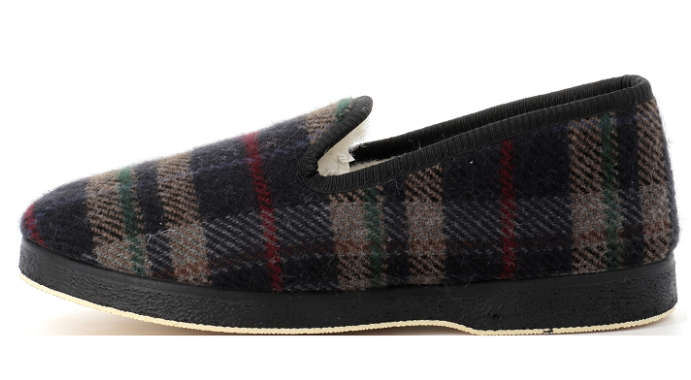 Pantoufle charentaise homme doublé laine semelle épaisse dessus sans couture SEMELFLEX Calomarc écossais marine