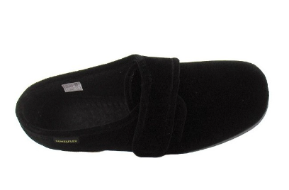 Pantoufle Velcro pieds sensibles Talon décroché Velours noir SEMELFLEX