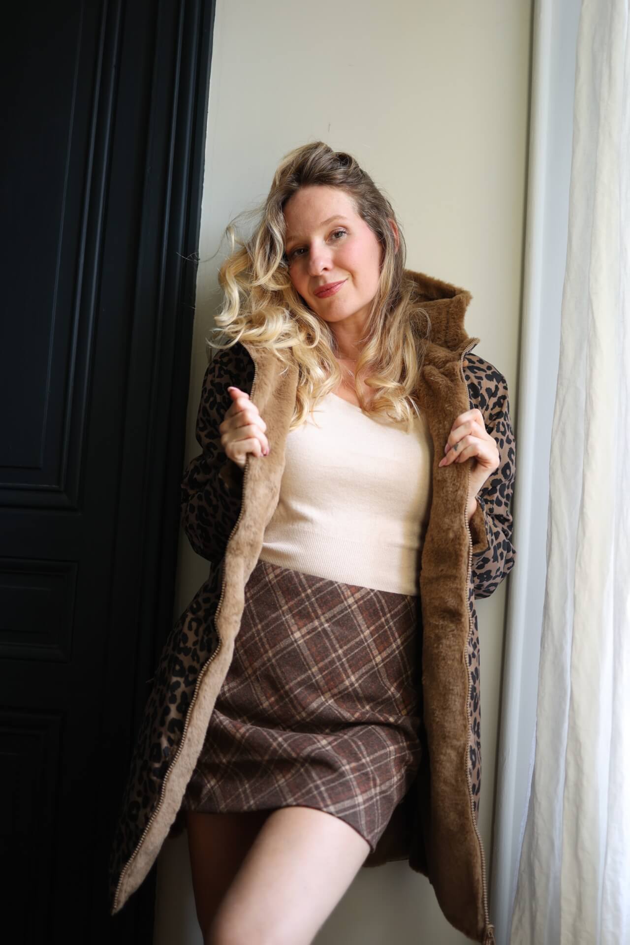 - Camel léopard (réversible) : le combo wild & sophistiqué.
