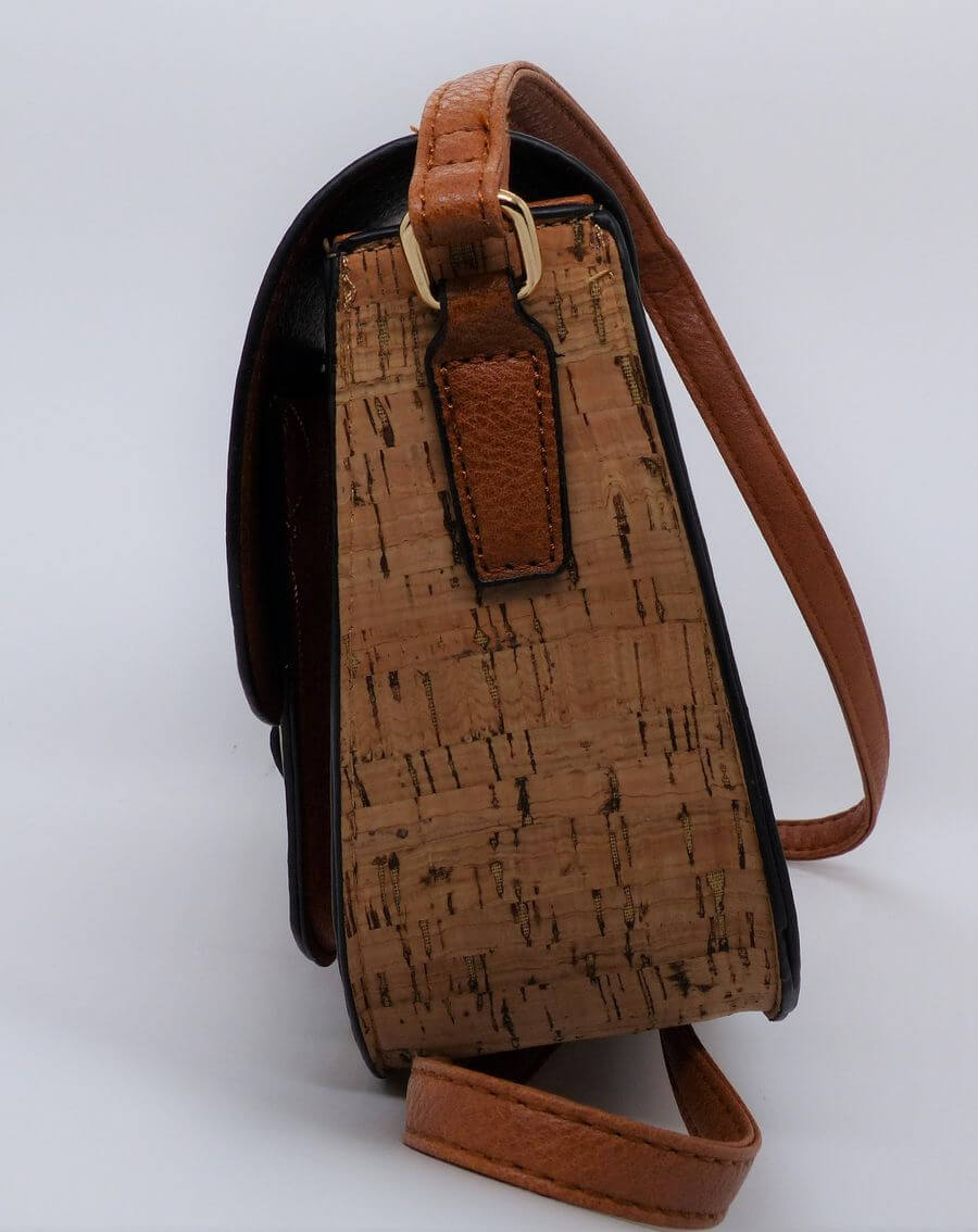Vous êtes proche de la nature ? Ce sac à main bandoulière en liège est fait pour vous ! Il apporte une touche automnale à vos tenues. Très pratique cette petite sacoche vous permettra d’emmener avec vous l’indispensable sans vous encombrer. L’intérieur est doté de plusieurs espaces de rangement ; d’abord une poche sous rabat où vous pourrez insérer vos clés par exemple, au centre une grande poche fourre tout dans laquelle vient se nicher une poche zippée plus discrète. La fermeture se fait par pression sous une fausse boucle. Vous pourrez ajuster votre sac à votre taille grâce à une bandoulière réglable d’une longueur de 135 cm. Dimensions ; hauteur 19 cm, largeur 20 cm, base 8 cm.