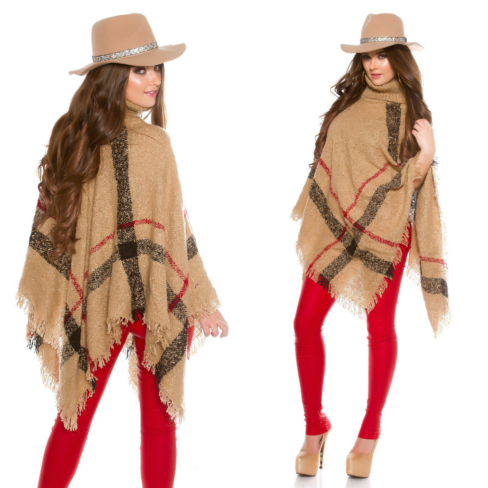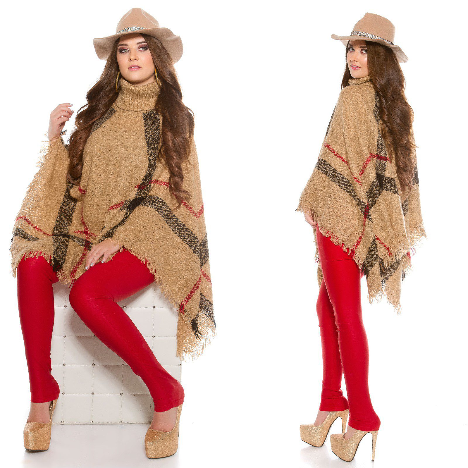 Poncho col roulé femme élégante NORA couleur cappuccino