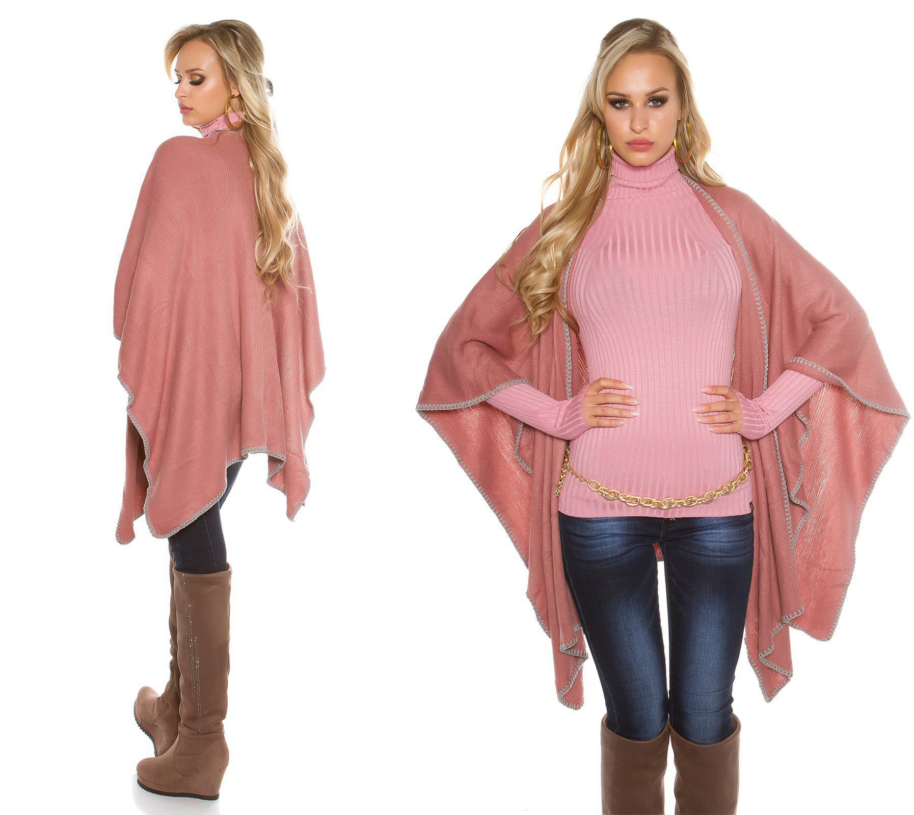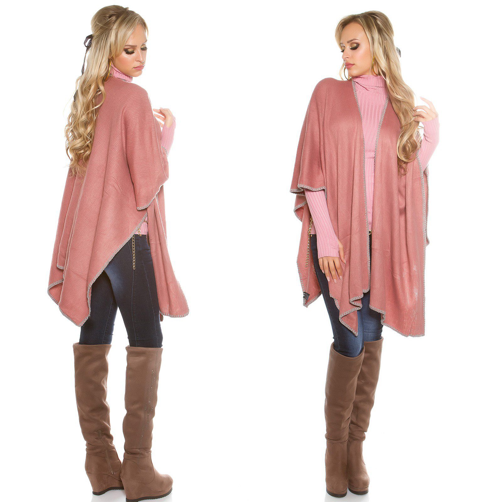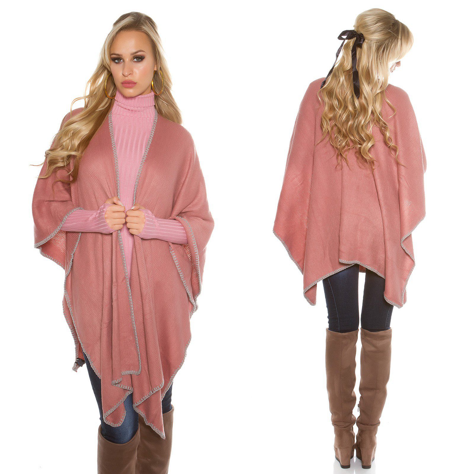 Poncho douillet femme tendance ENORA couleur rose