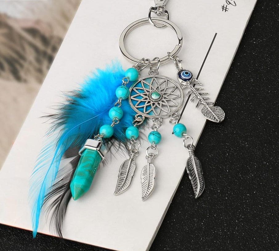 Inspirez-vous des cultures ancestrales en agrémentant votre maroquinerie d’un splendide Porte-Clef inspiré des Attrape-Rêves Amérindiens.
