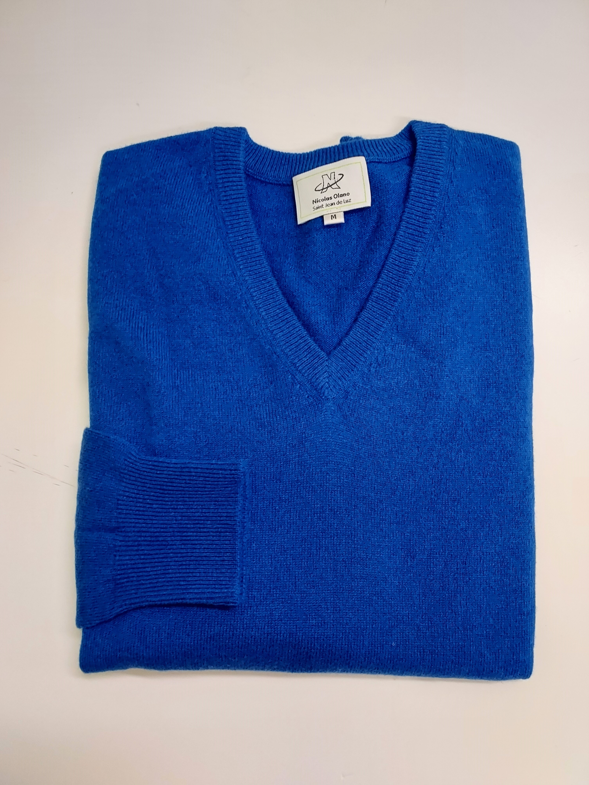 PULL CACHEMIRE COL V BLEU LAPIZ