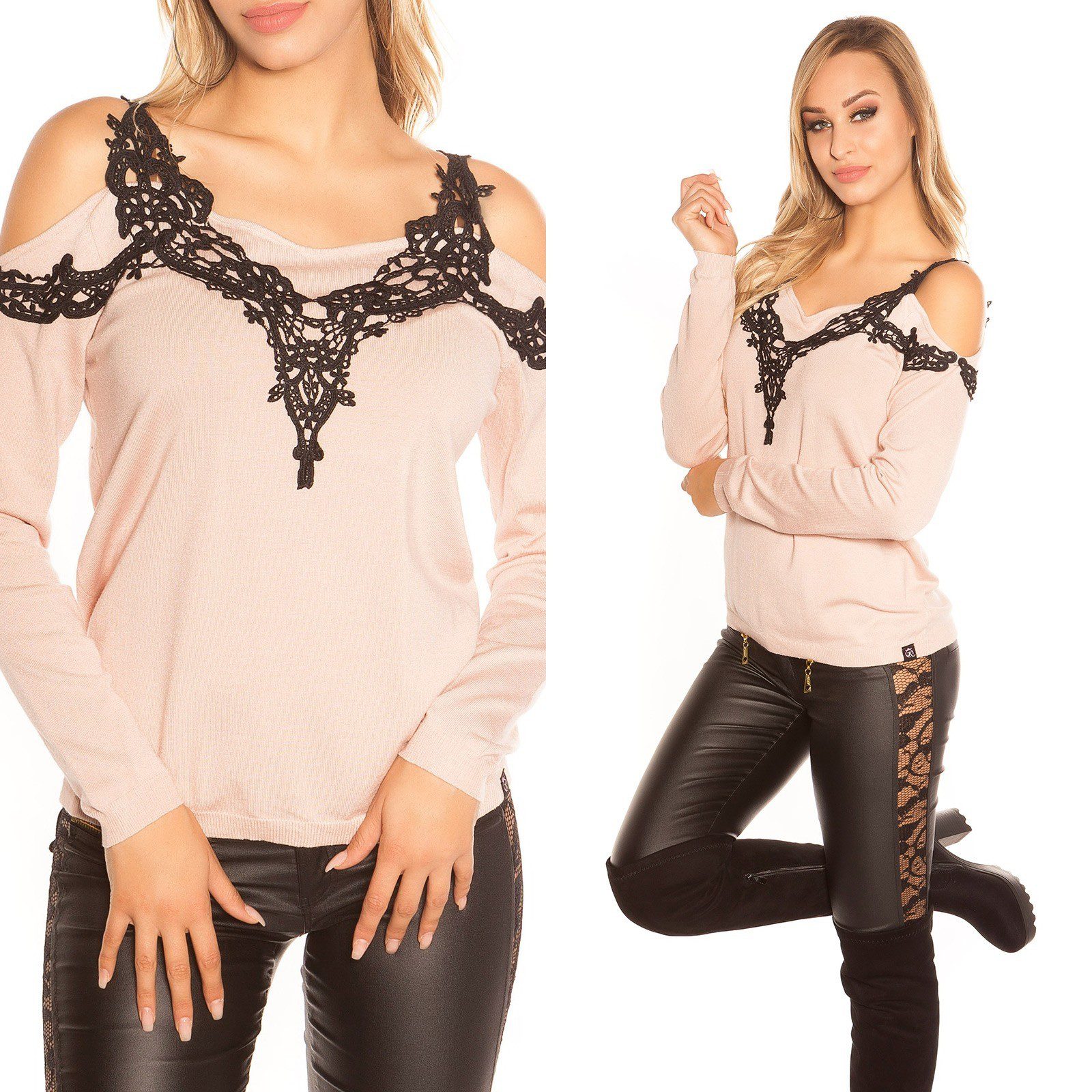 Pull dentelle femme sexy LIZIE couleur vieux rose