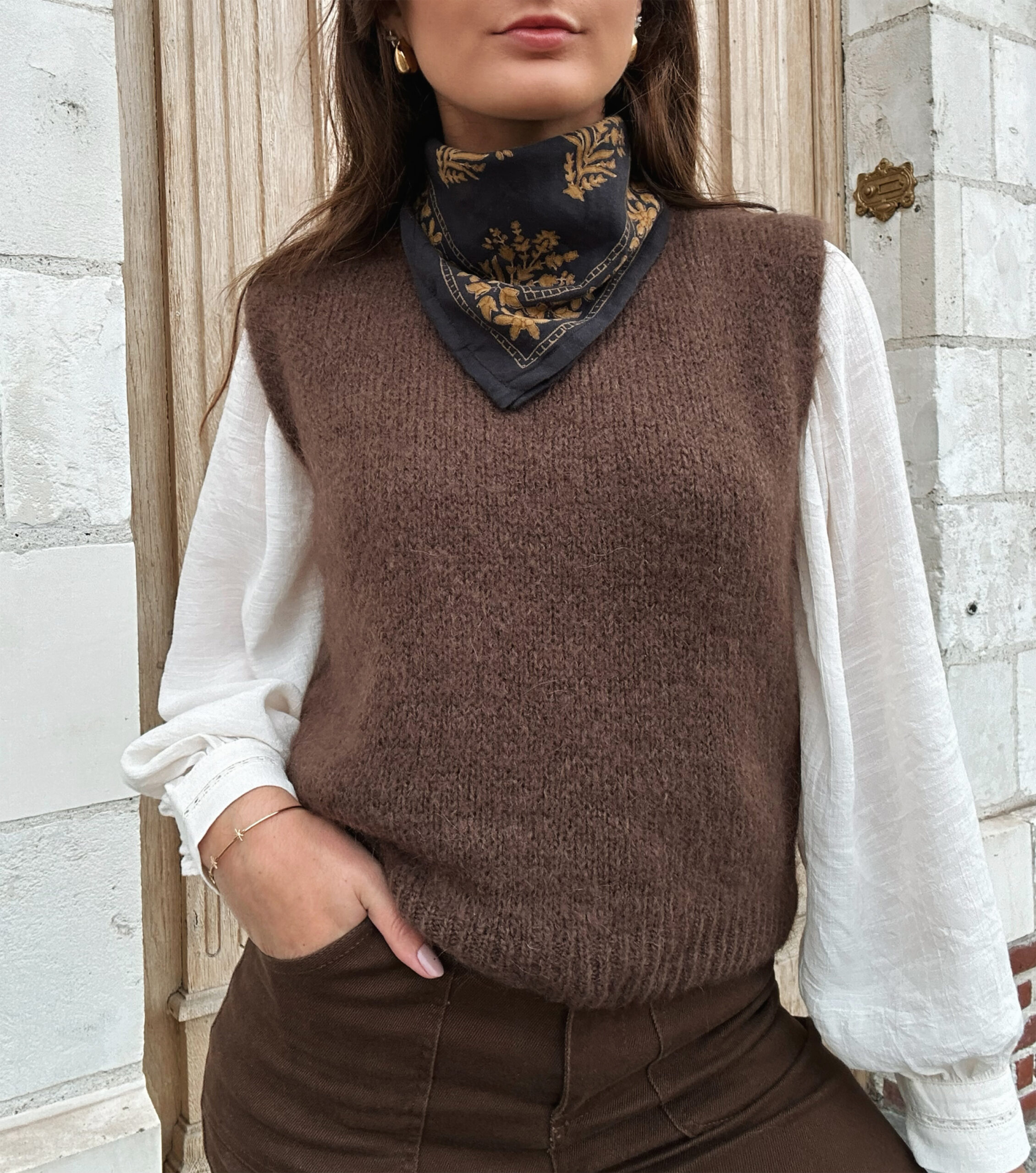- Modèle sans manches à porter en superposition au dessus d’une jolie blouse