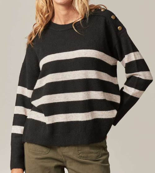 Pull coupe oversize, col rond. Détails boutons à l’épaule.