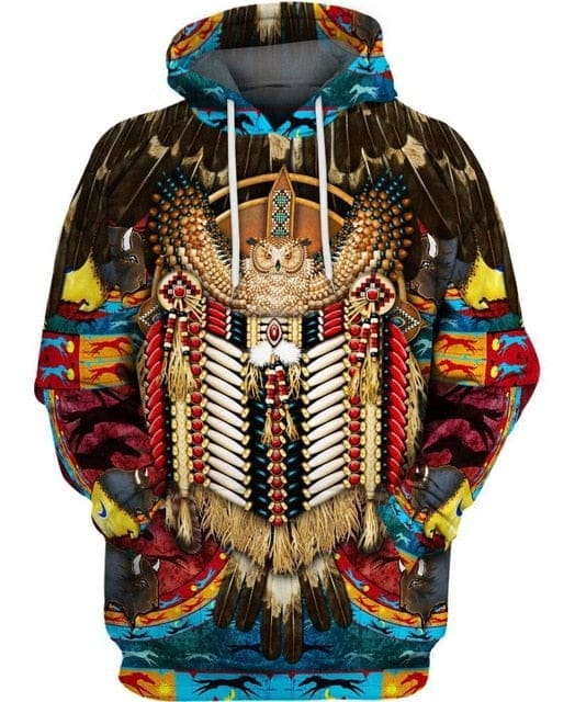 Optez pour une allure autochtone avec le Pull Amérindien Hibou Majestueux.
