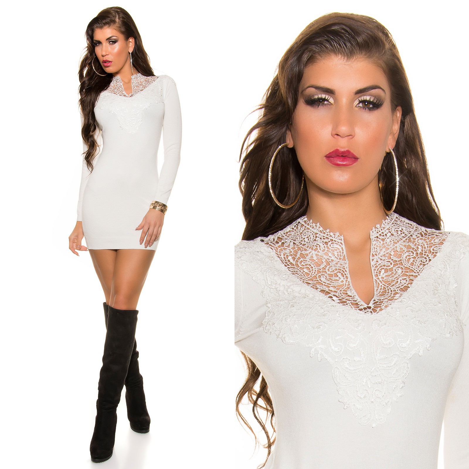 Pull long femme sexy col dentelle CASSANDRA couleur blanc