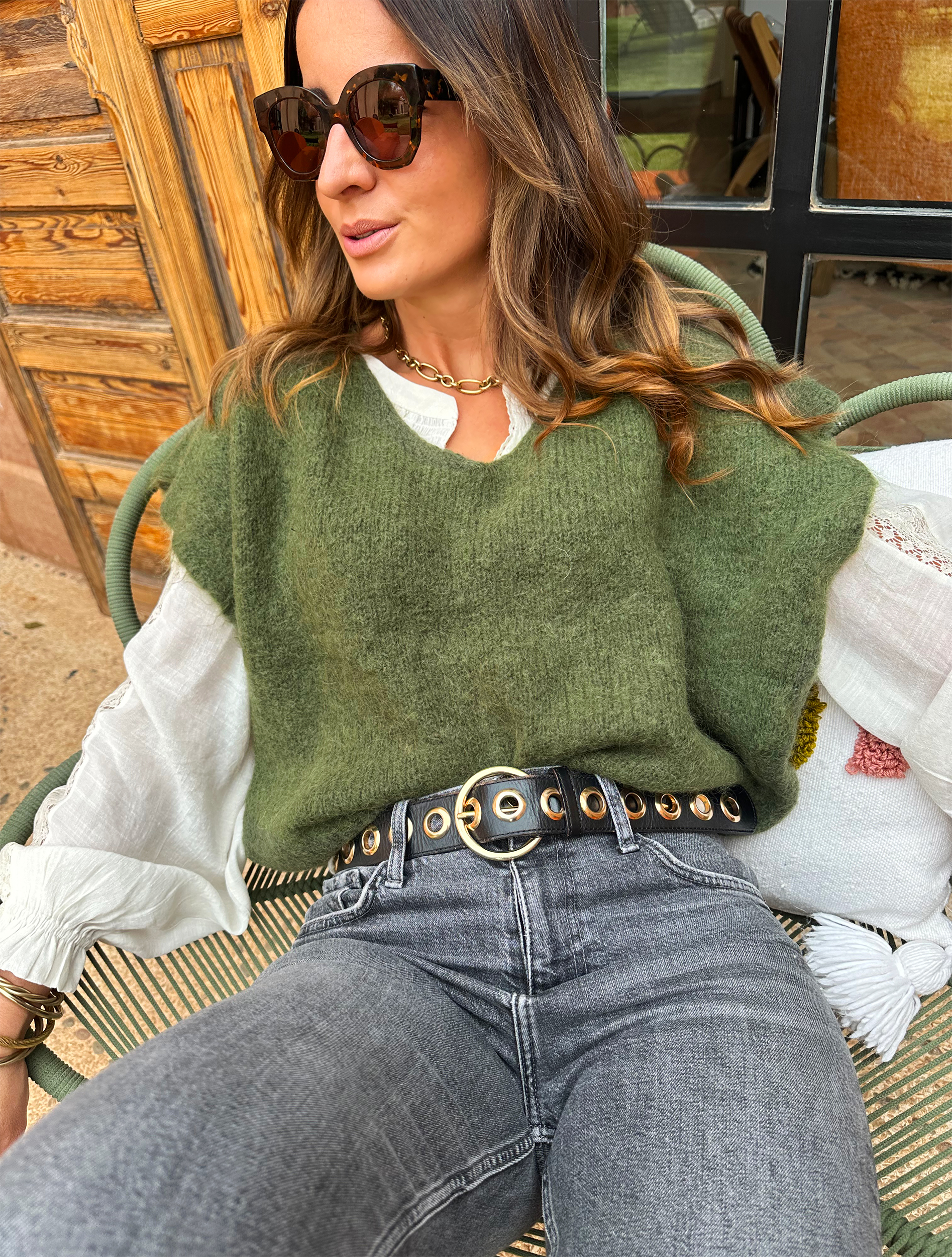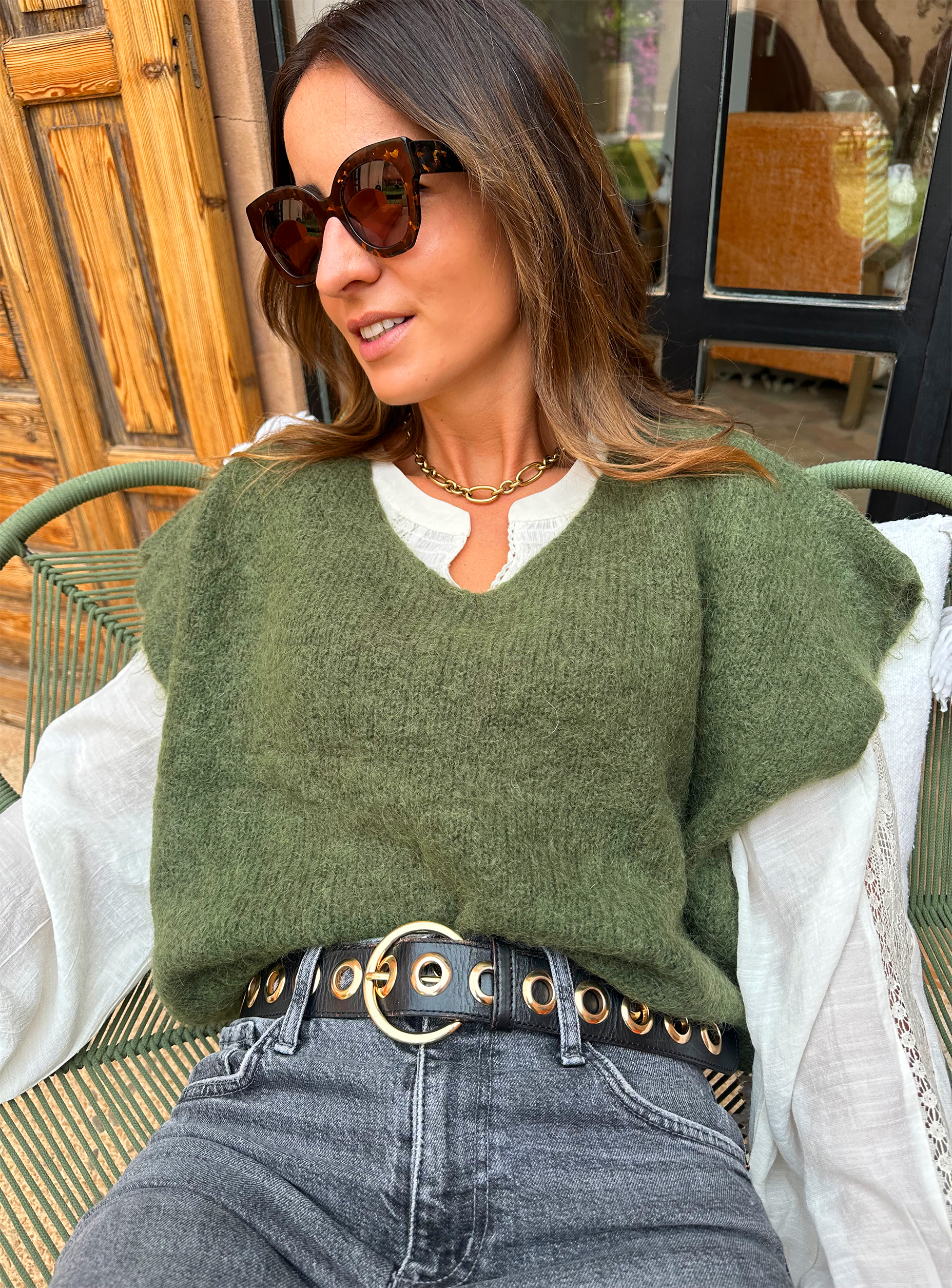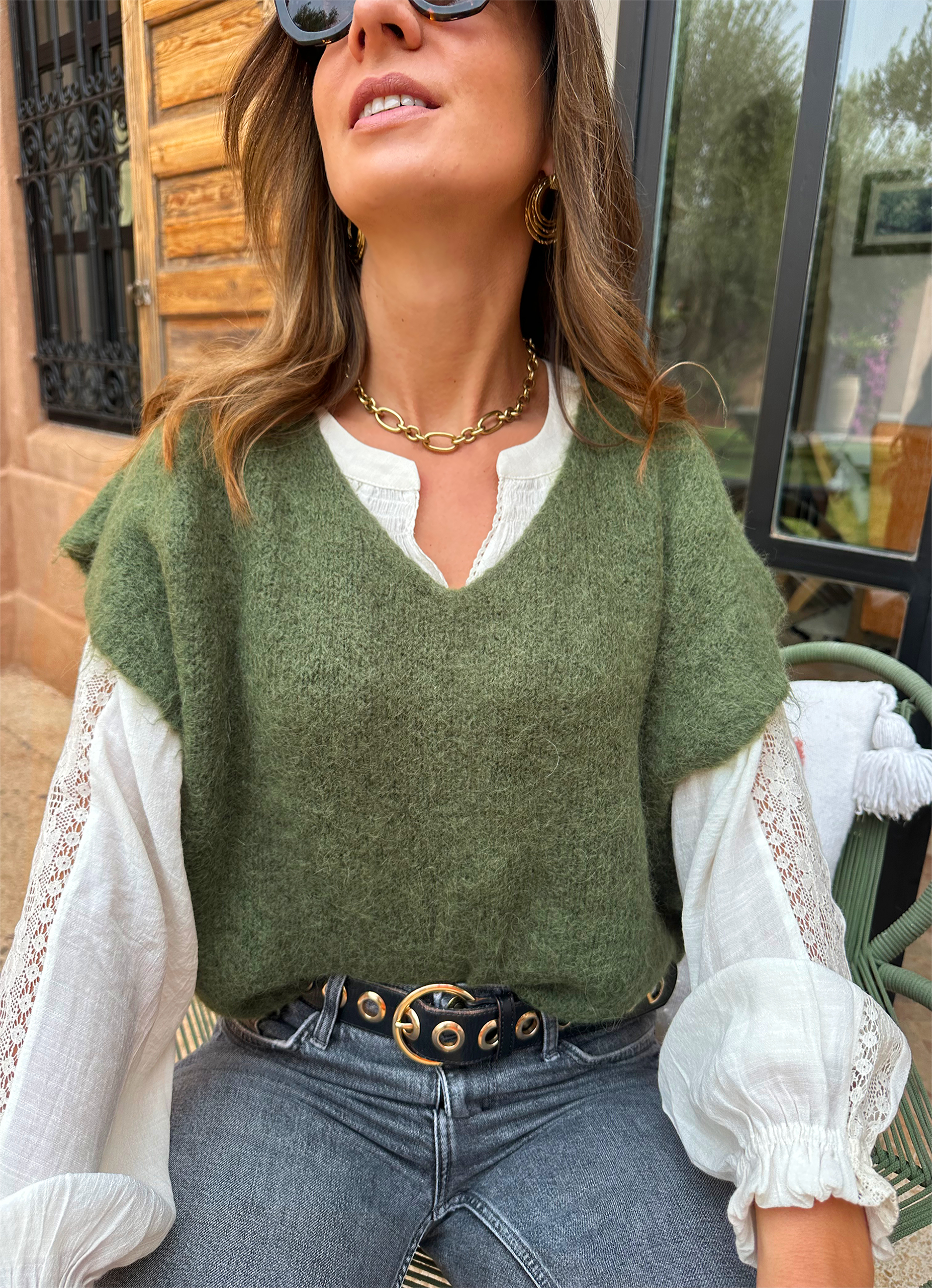 - Modèle sans manches à porter en superposition au dessus d’une jolie blouse