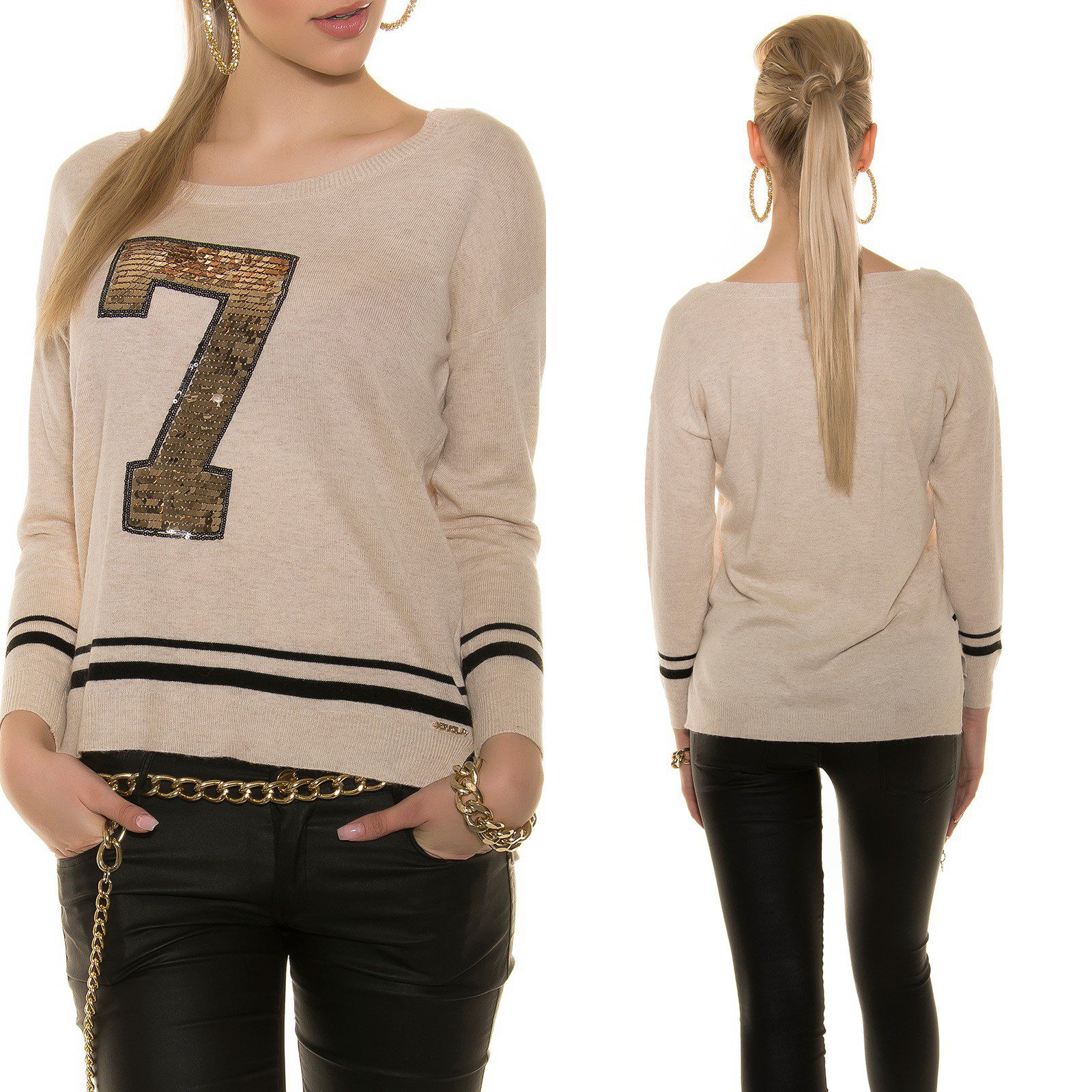 Pull tendance à paillettes col large pour femme fashion au look sport chic et décontracté