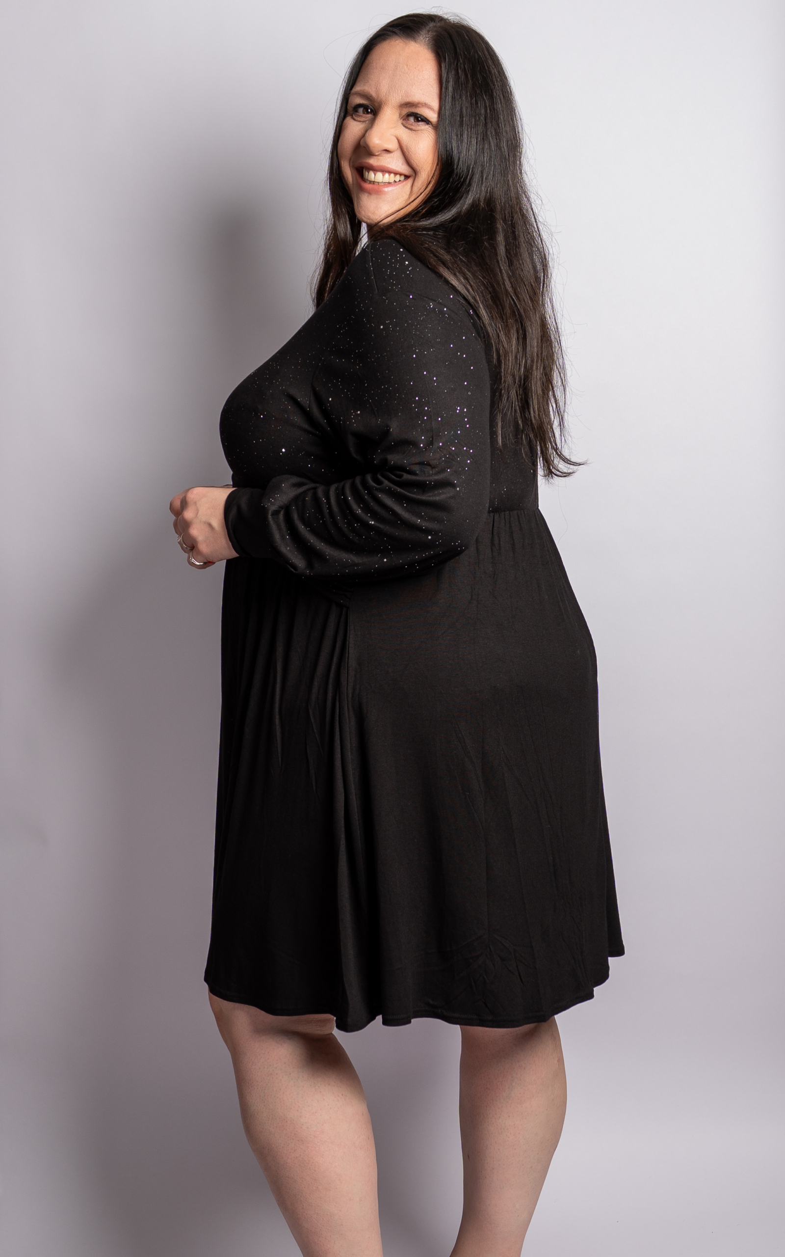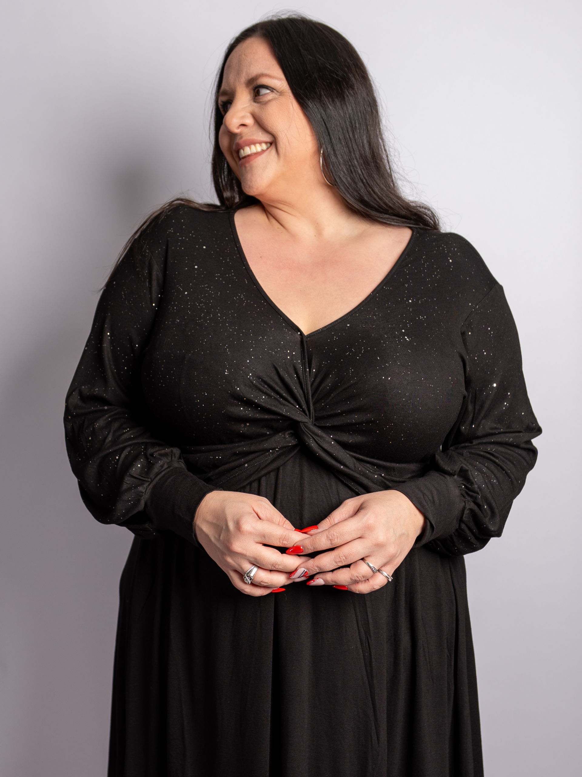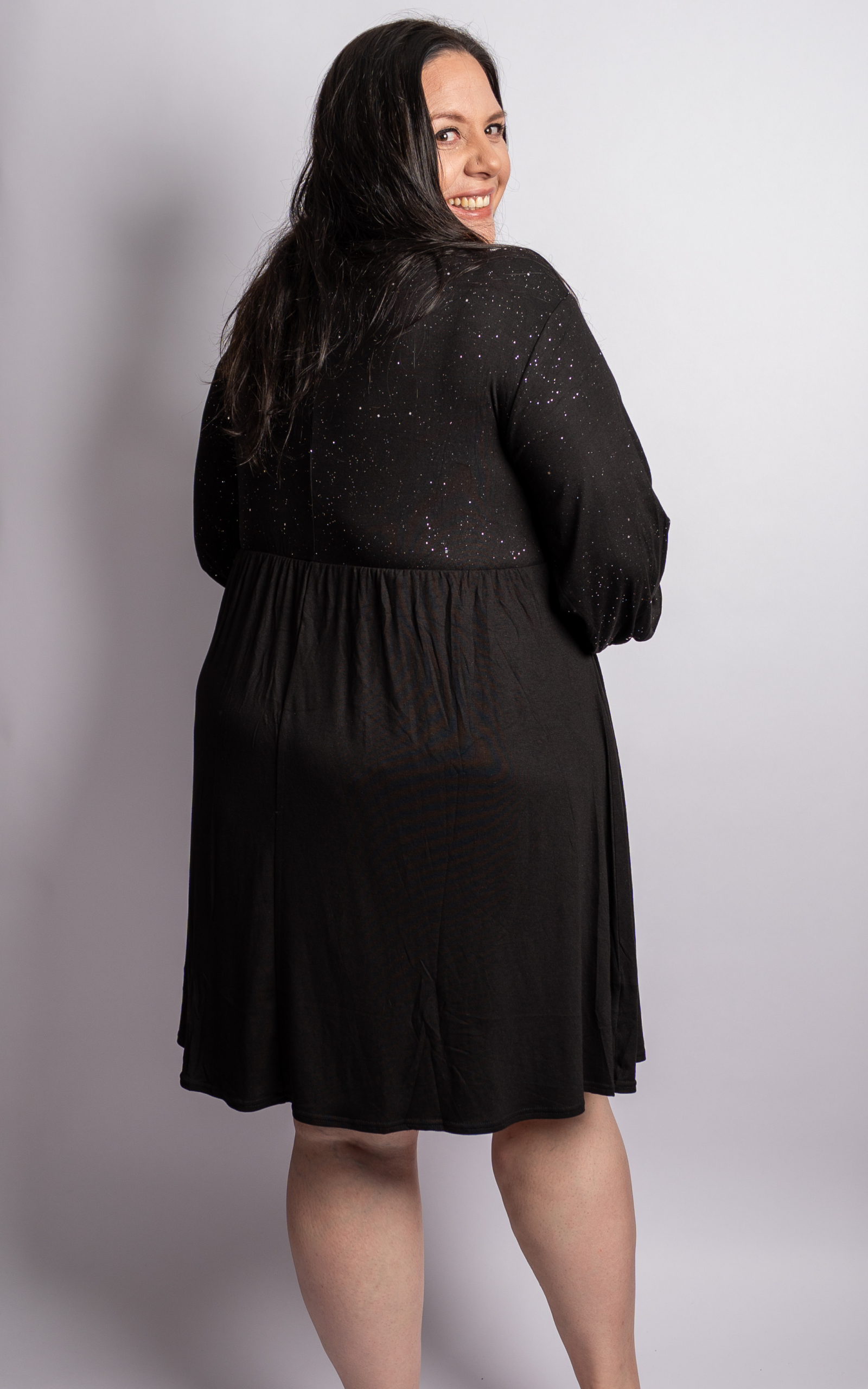 Cette robe pailletée grande taille est conçue pour vous faire sentir belle et confiante lors de vos occasions spéciales. Le haut pailleté apporte une touche de sophistication, tandis que la coupe fluide assure un confort optimal. Parfaite pour les femmes qui assument leurs courbes avec élégance.