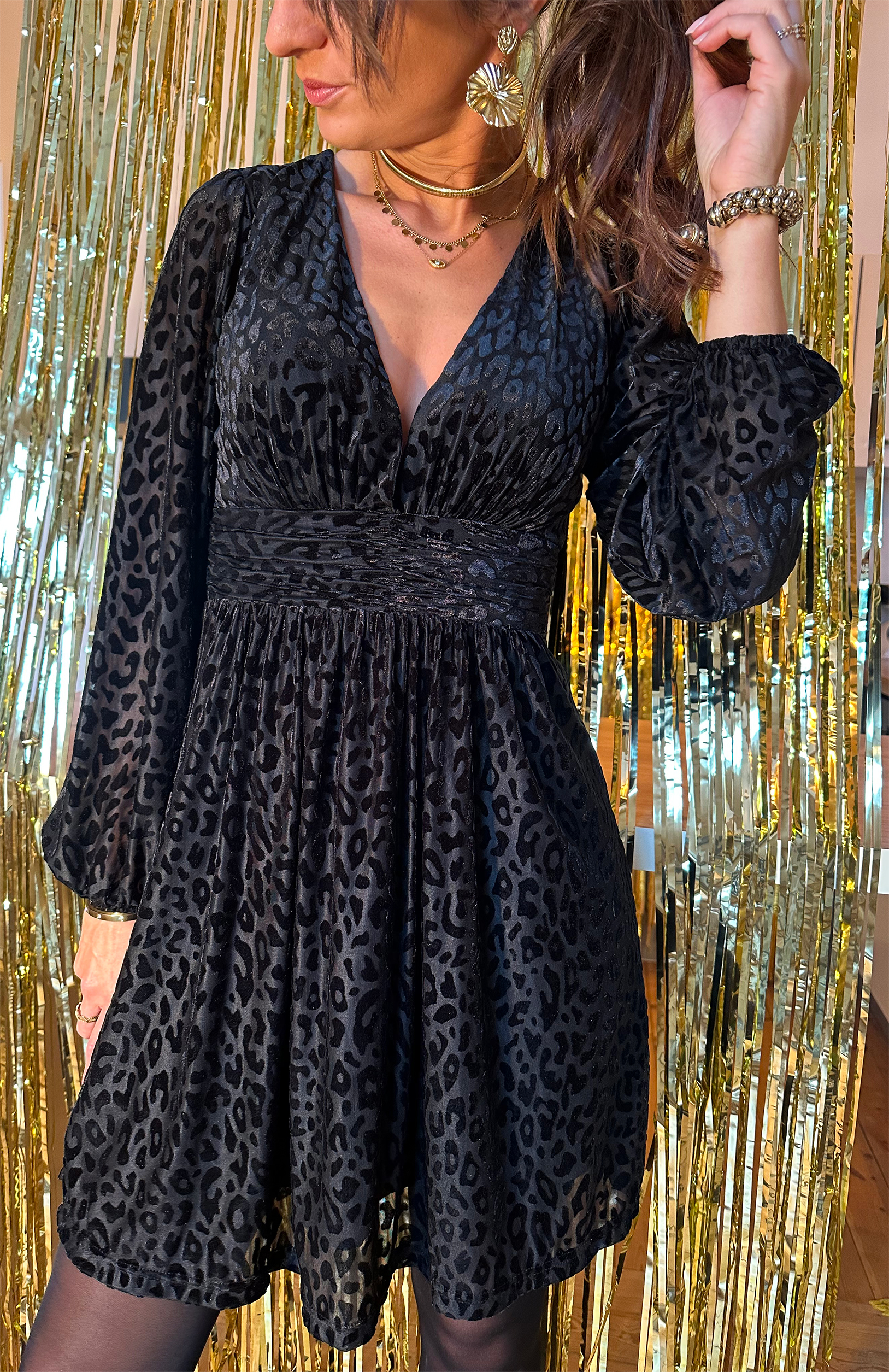 Coup de coeur pour notre nouvelle robe Ellie ! Ultra canon avec ses effets de transparence et ses taches façon léopard noir en velours, elle saura vous rendre ultra glamour !