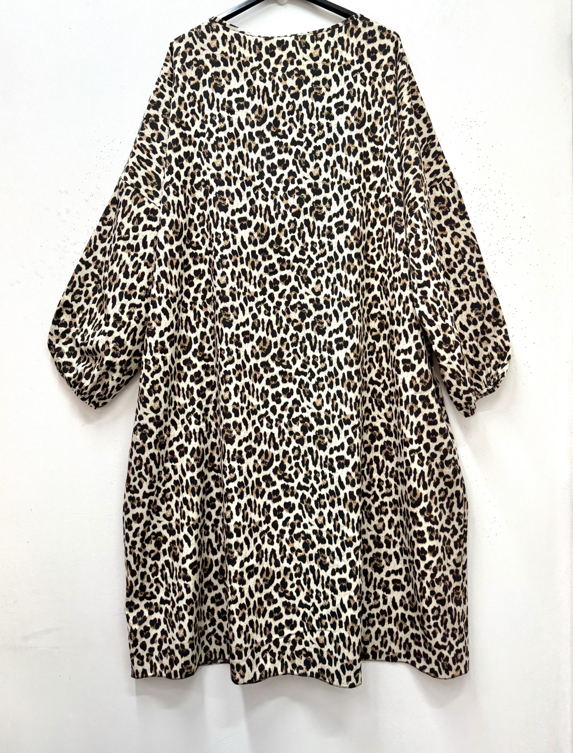 Osez l’audace avec cette magnifique robe fluide à manches bouffantes ornée d’un imprimé animalier tendance, parfaite pour affirmer votre style avec élégance.