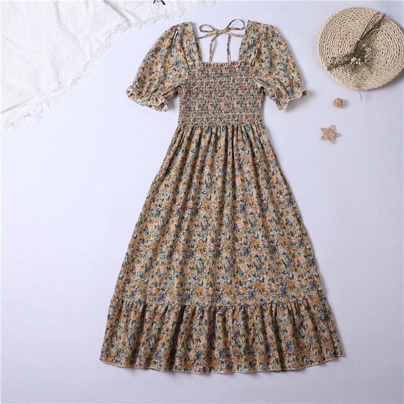 Confort et fluidité vous séduiront avec notre robe style Hippie teinte Moutarde.