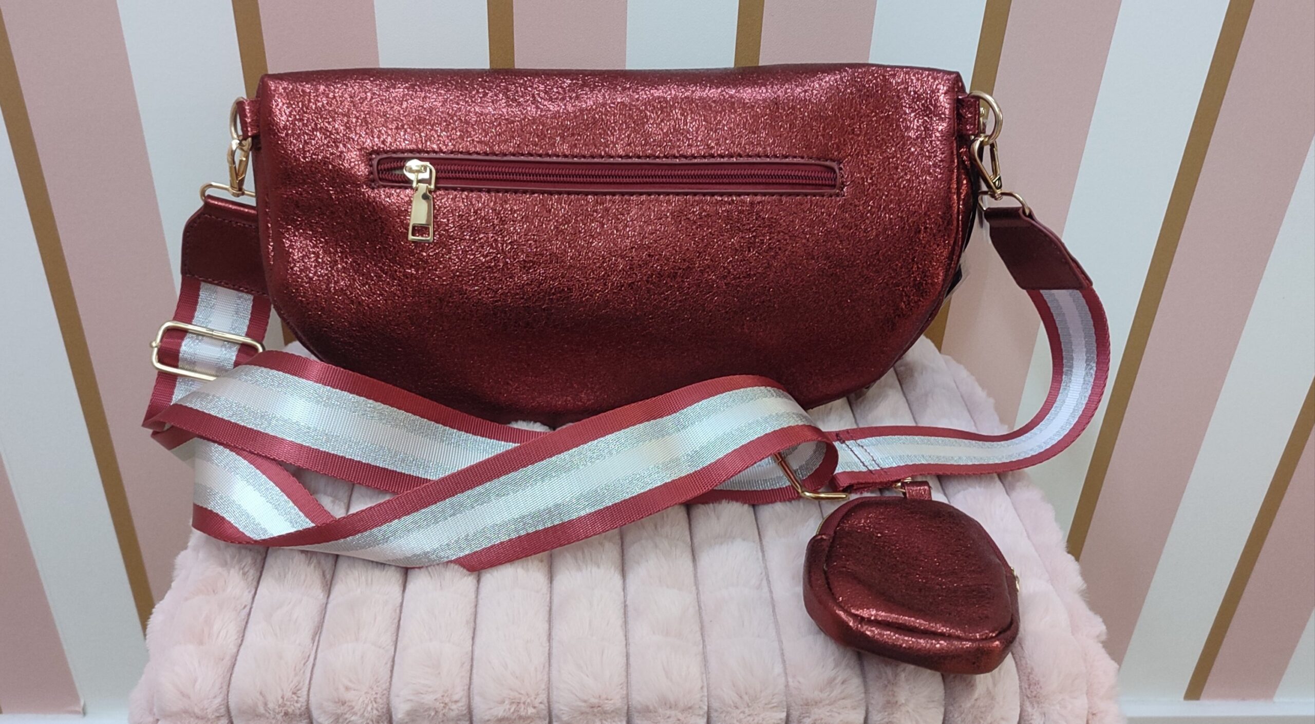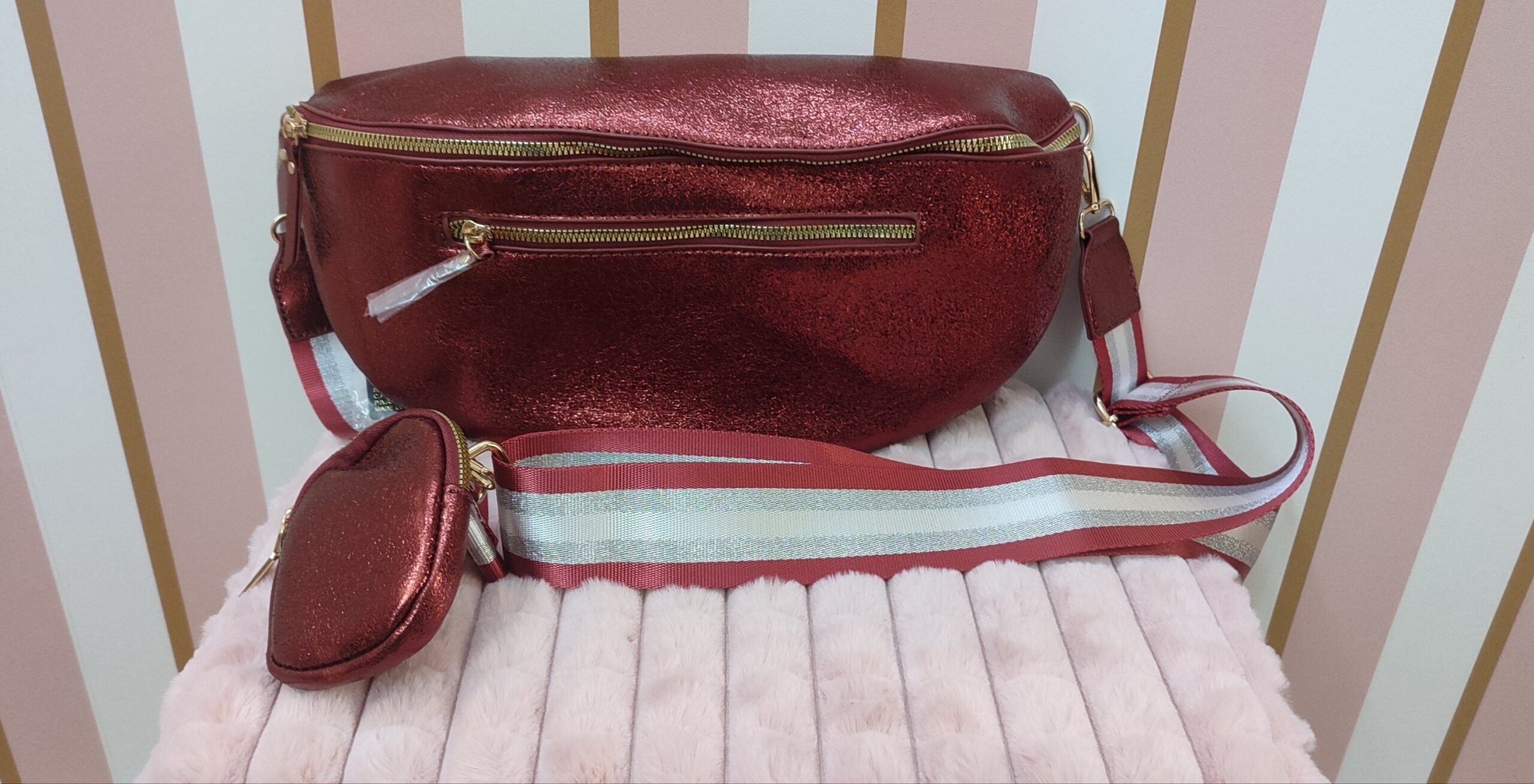 Soyez le premier à laisser votre avis sur “Sac banane bandoulière large taille xxl 35 cm rouge bordeaux métallisé”