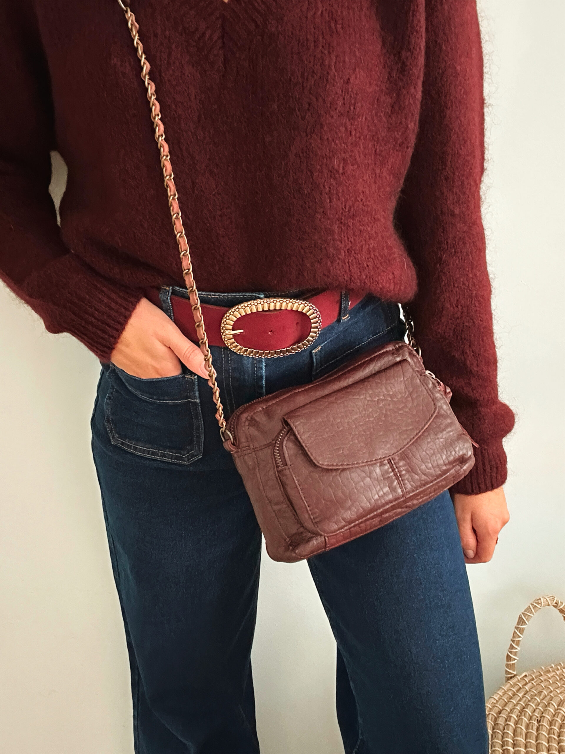 Coup de foudre pour notre sac bandoulière LISA uni en bordeaux !