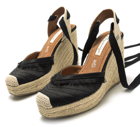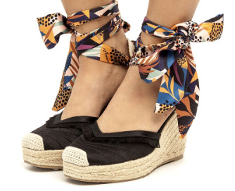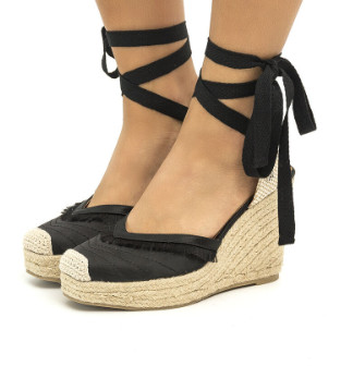 Sandales compensées avec lacet qui remonte sur la cheville. Livrées avec une paire de lacet colorée. Talon de 10,5 cm.