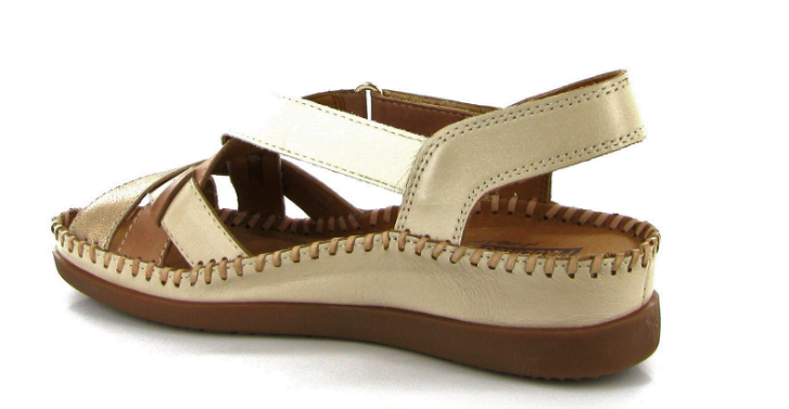 Sandale cuir souple femme talon compensé coloris beige/marron/or PIKOLINOS cadaques