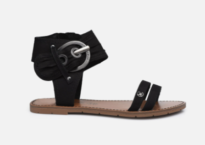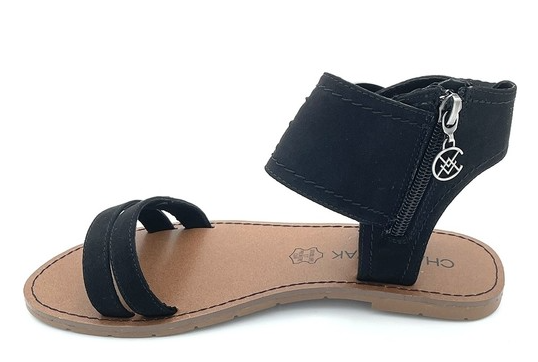 Sandale femme mode bride cheville talon plat fermeture par zip côté noir ou argent CHATTAWAK PACOME