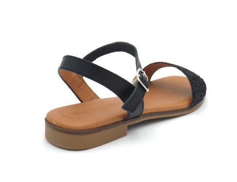 Sandale plate cuir femme large bride coloris noir orné de strass EVA FRUTOS