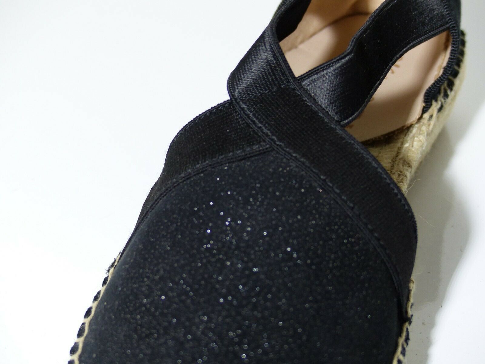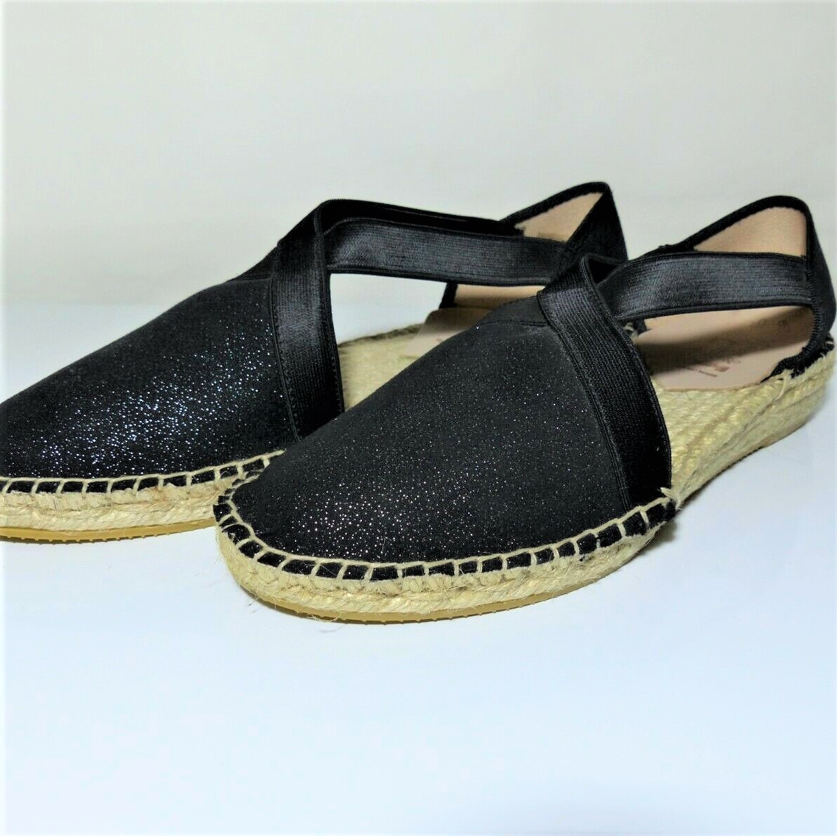 Directement inspirées des espadrilles, ces sandales en toile vont tout de suite donner une belle allure décontractée à vos tenues d’été. Le dessus est en toile serrée noire discrètement parsemée de points argentés. Après les avoirs enfilées à l’aide des deux élastiques croisés sur les côtés, votre talon reposera sur un empiècement intérieur en cuir. Avec une semelle plate, fermées au bout et au talon, elles peuvent convenir aussi aux tenues de ville.