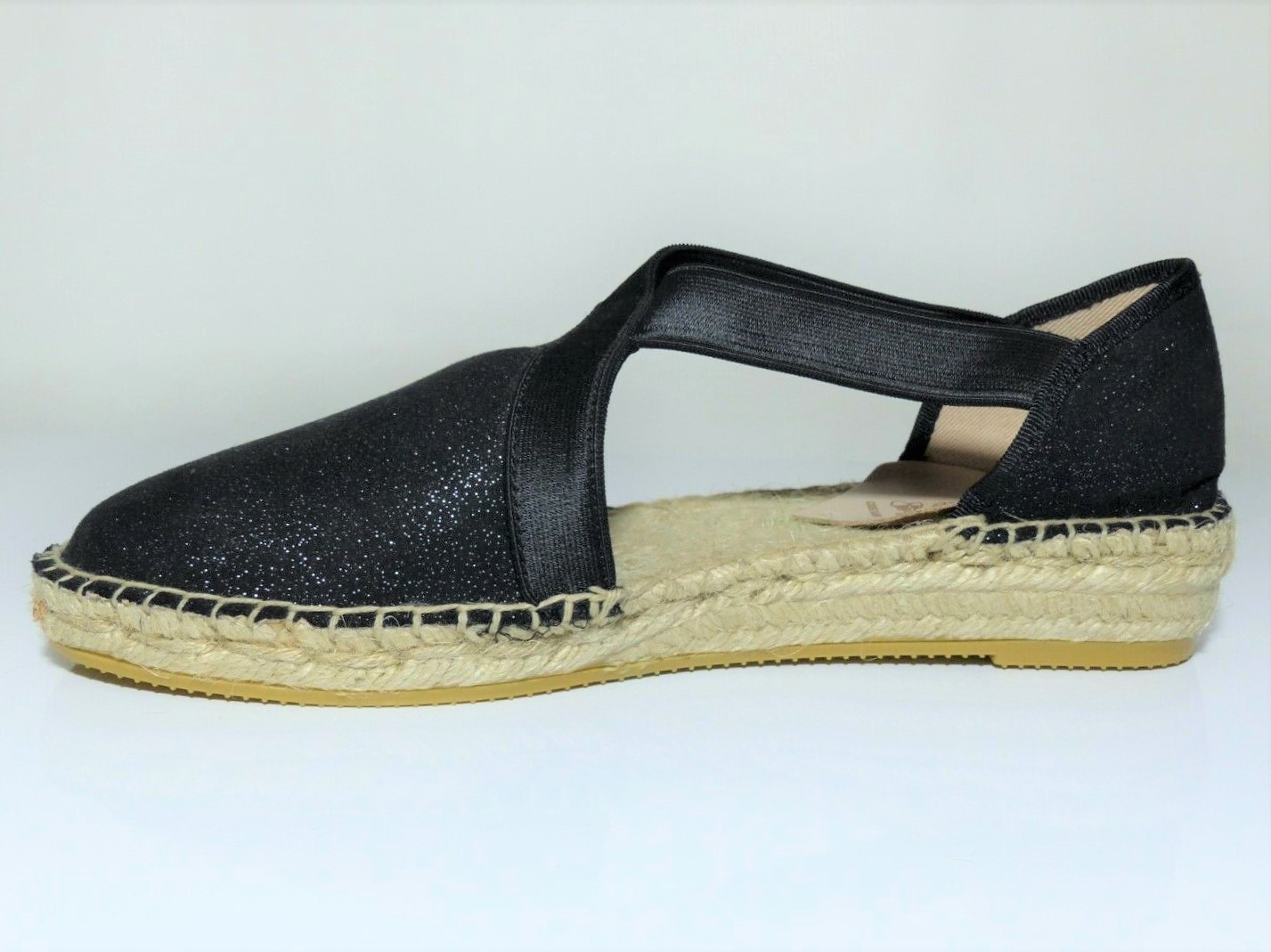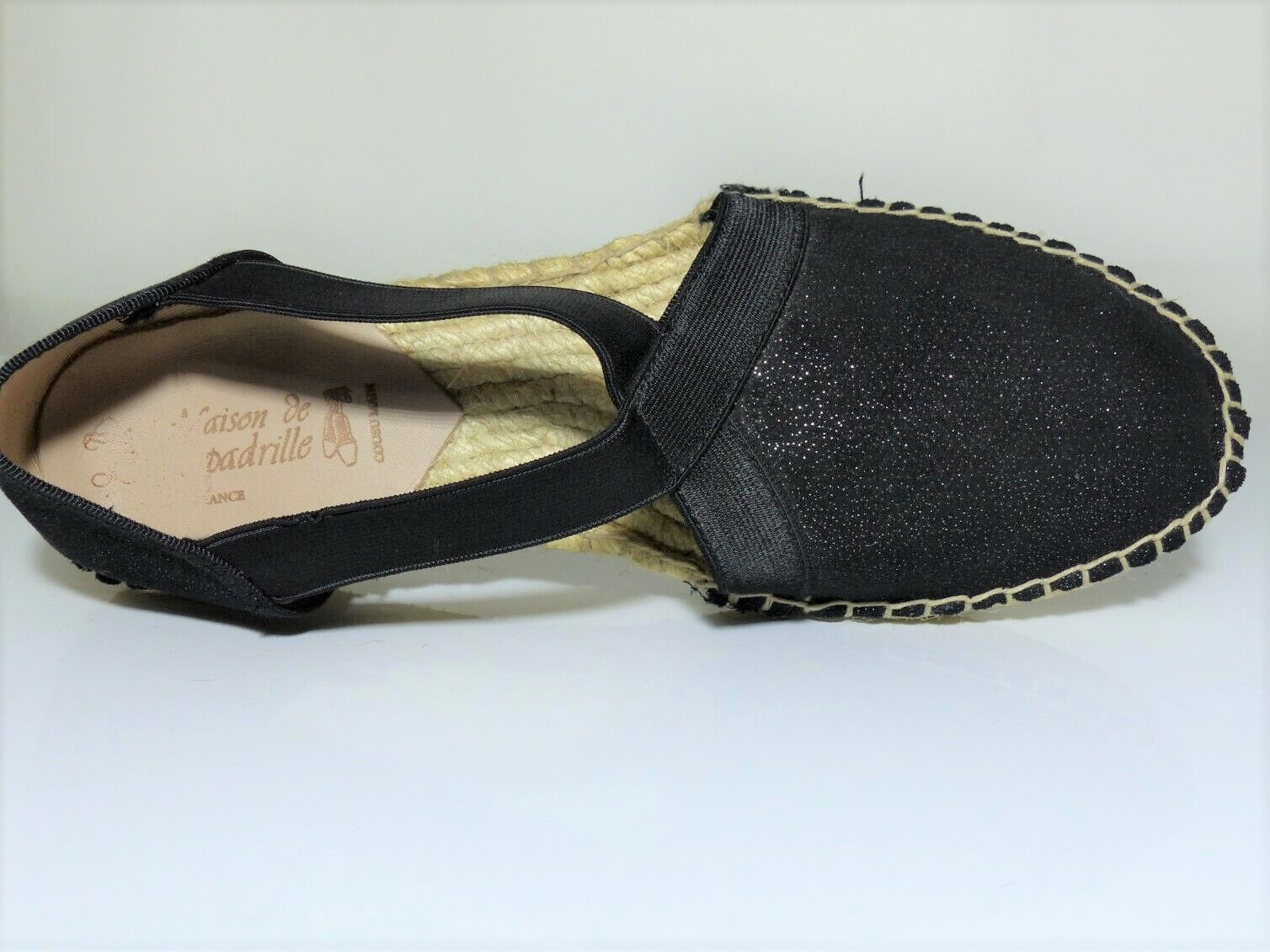 Sandales femme toile espadrille semelle intérieure cuir et corde talon plat LA MAISON DE L’ESPADRILLE coloris noir irisé