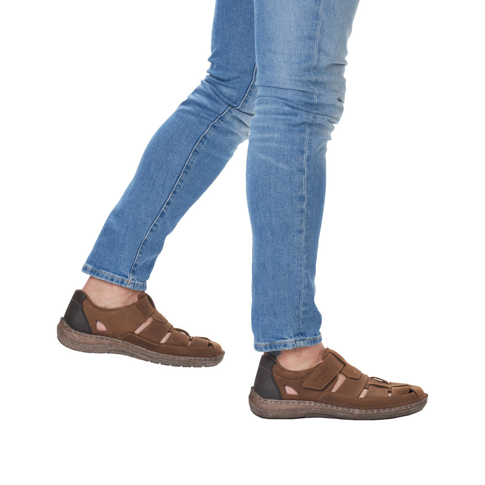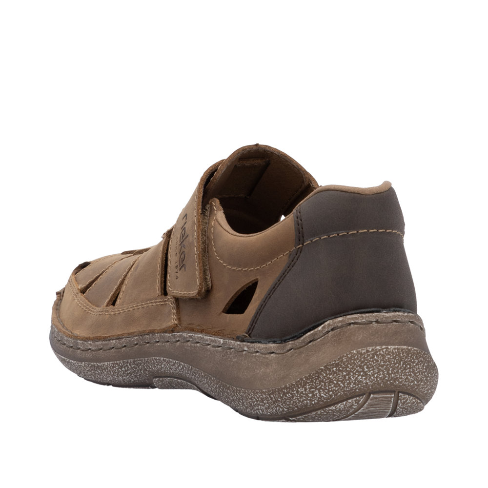 Sandales homme Confort Fermées à l’arrière Velcro Dessus aéré Mocassin RIEKER 03078-25 marron