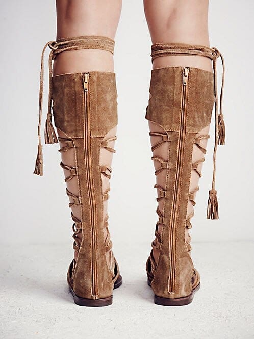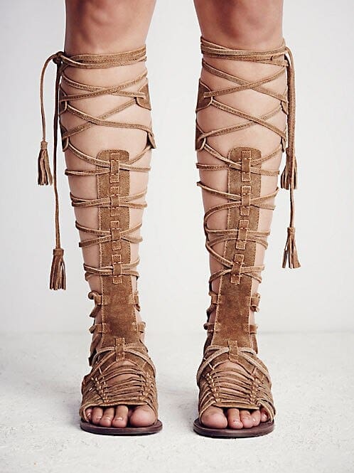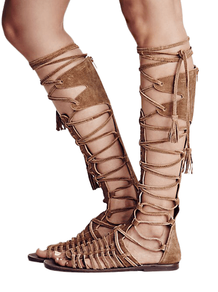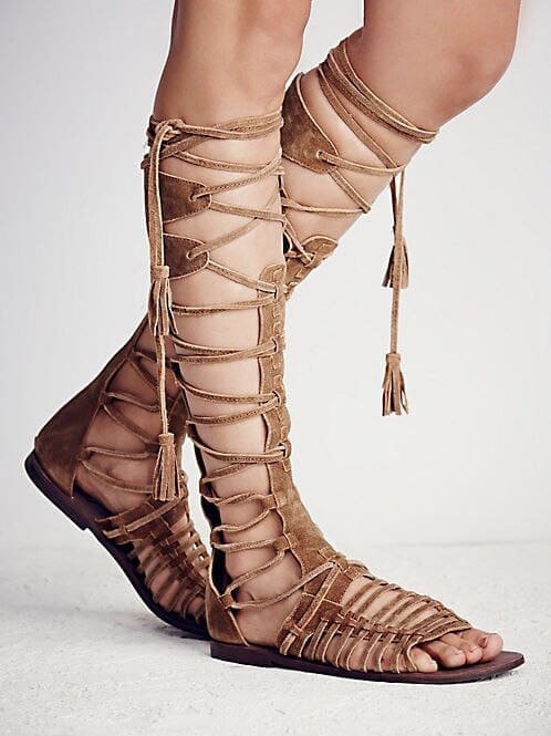 Sandales Indiennes Marron Plates à Lacets