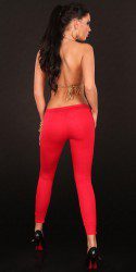 Sexy leggings fashion avec dentelle et strass couleur rouge