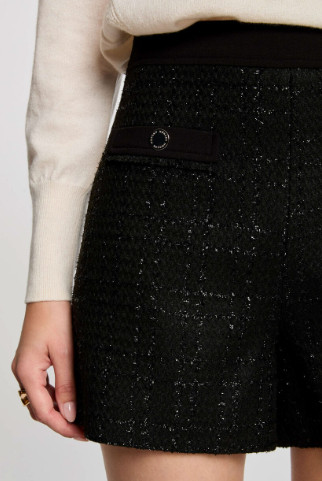 Short en tweed taille haute. Fermeture zippée sur le côté. Deux fausses poches à l’avant. Short doublé. 100% polyester