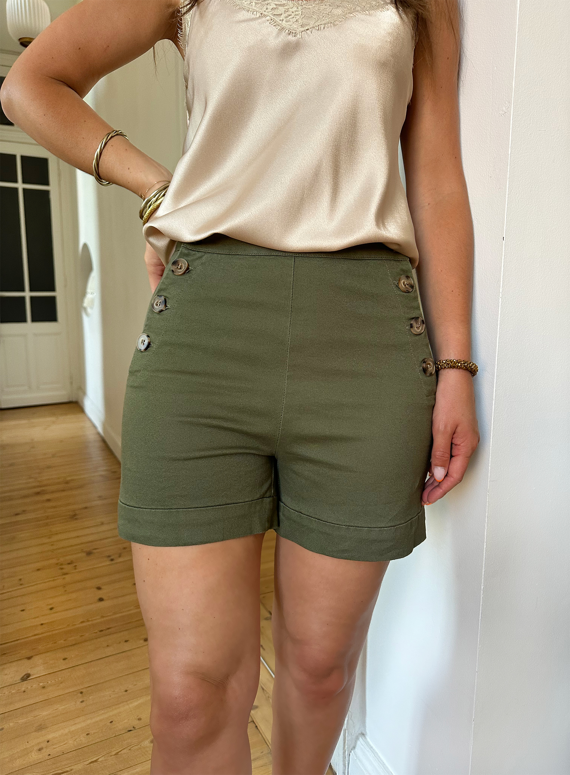 Avec sa taille haute, et ses jolis boutons côtés, il mettra votre taille en valeur.