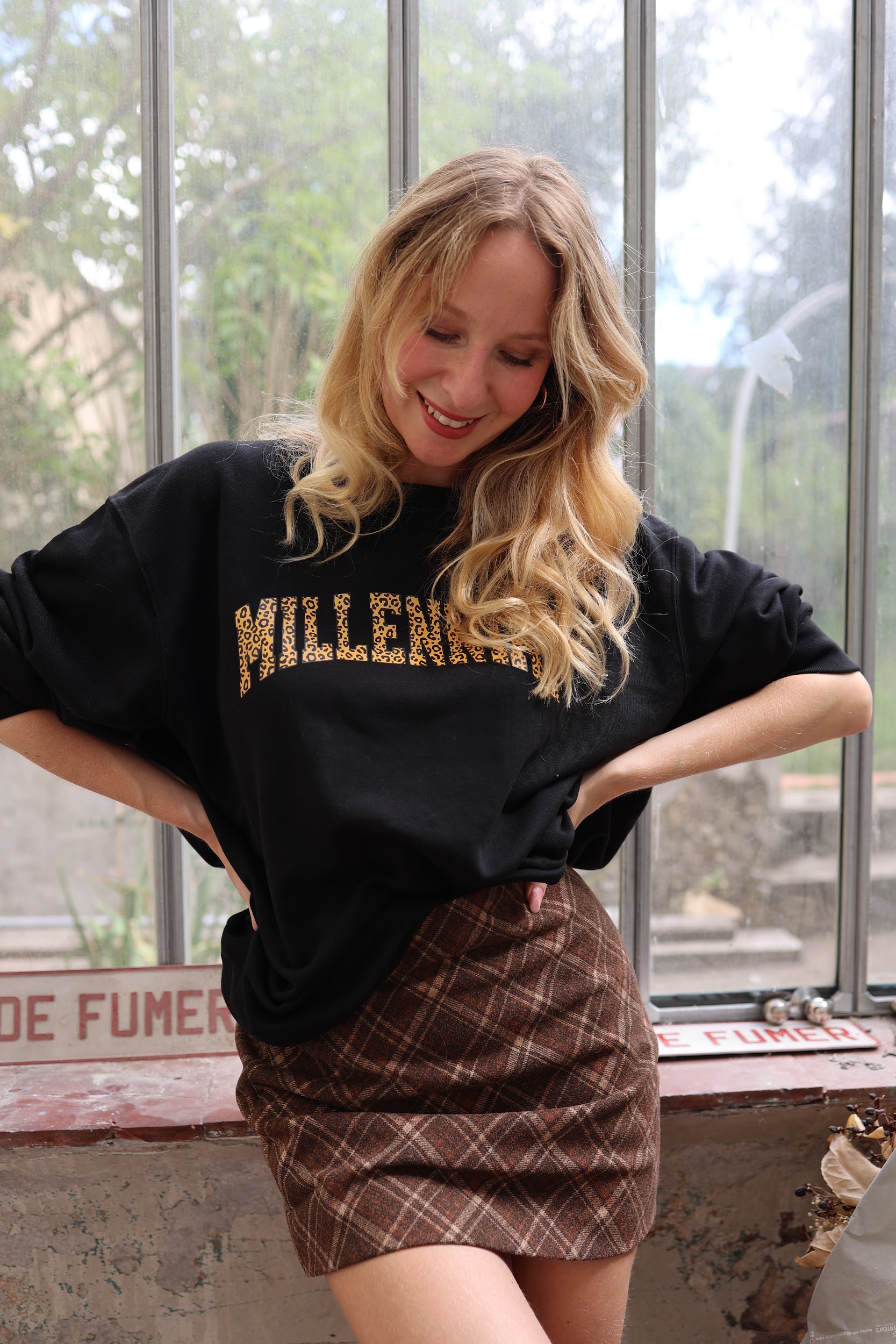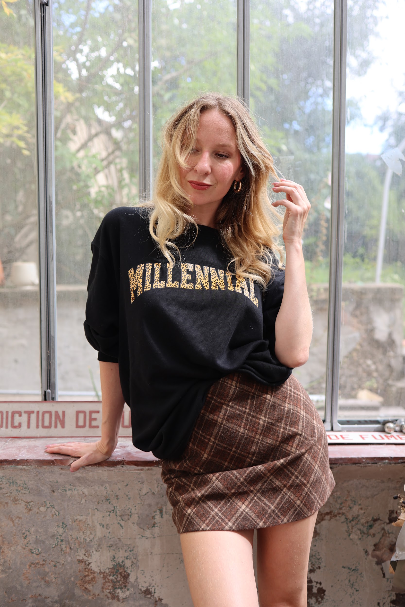 Le mot “MILLENNIAL” en sérigraphie léopard velours, façon logo de groupe culte (comme celui de notre t-shirt iconique Thelma & Louise).