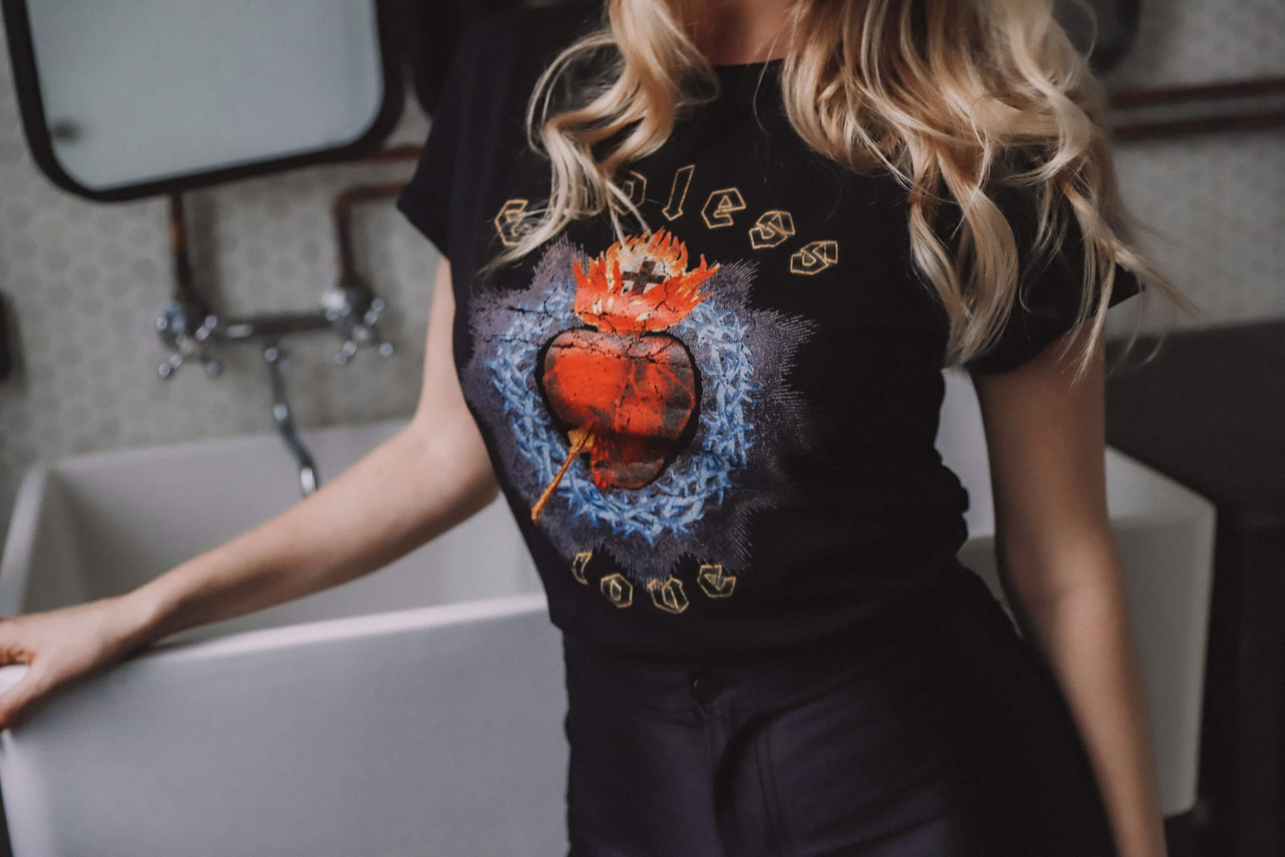 C’est ton t-shirt de tatouée pas tatouée, de rideuse en trottinette, de badass bien élevée, d’ado attardée mère de famille, de rockeuse qui mélange Rage avec Juliette Armanet.