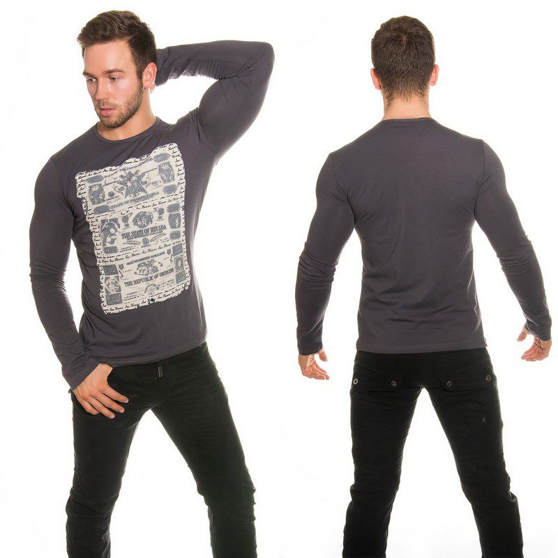 T-shirt Homme manche longue stylé couleur gris foncé
