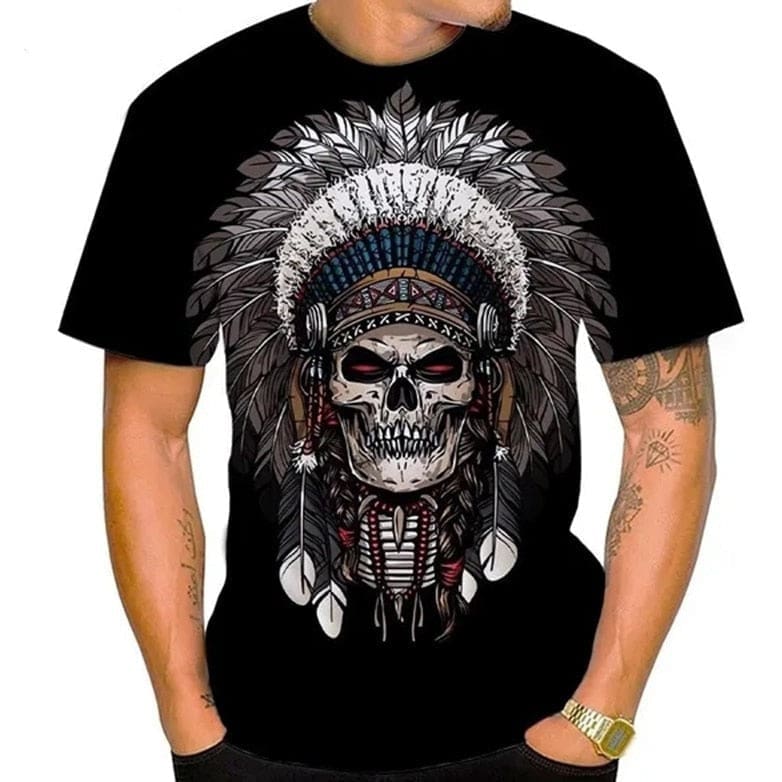 Découvrez le patrimoine des nations autochtones avec notre T-shirt au motif crâne de chef indien : une fusion parfaite entre héritage ancestral et esthétique contemporaine.