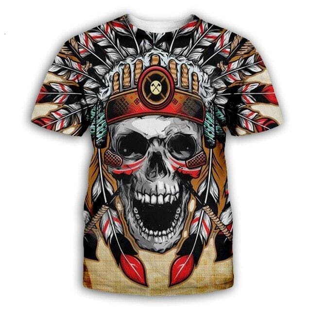Affichez un style audacieux avec notre T-shirt à motif Crâne Amérindien