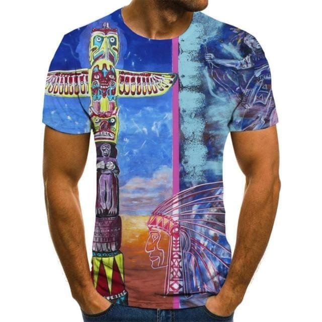 L’astre lumineux brille haut ! Illuminez votre look avec un T-shirt aux motifs inspirés des tribus Amérindiennes.