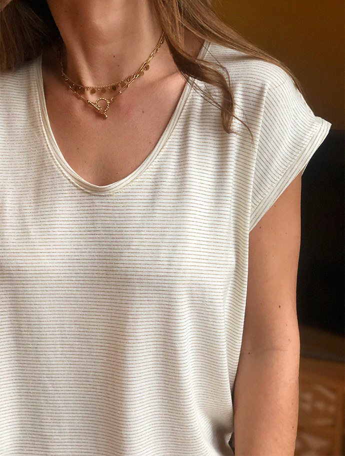 Notre t-shirt Milo, un intemporel qui illuminera vos journées grâce à ses détails dorés !