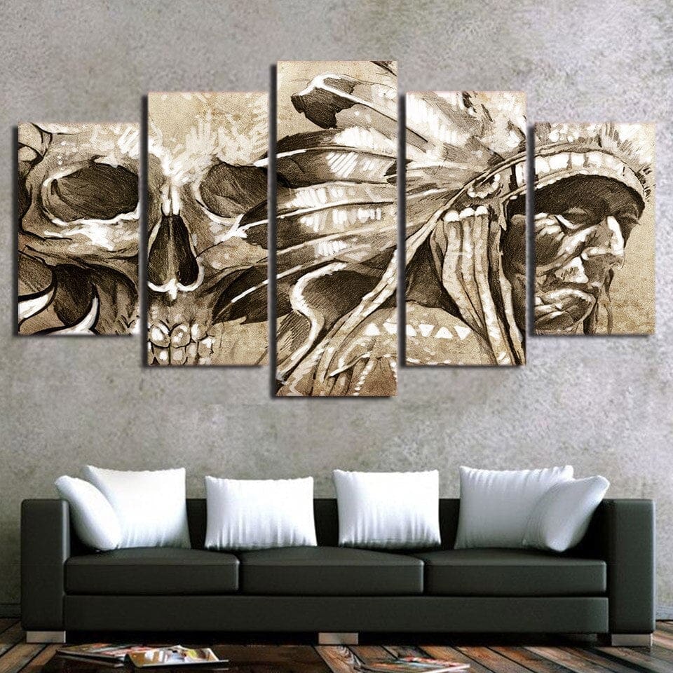 Passionné par l’univers Skull et l’artisanat Amérindien ? Découvrez l’harmonie de ces mondes dans un Tableau Indien cinq panneaux exclusif.