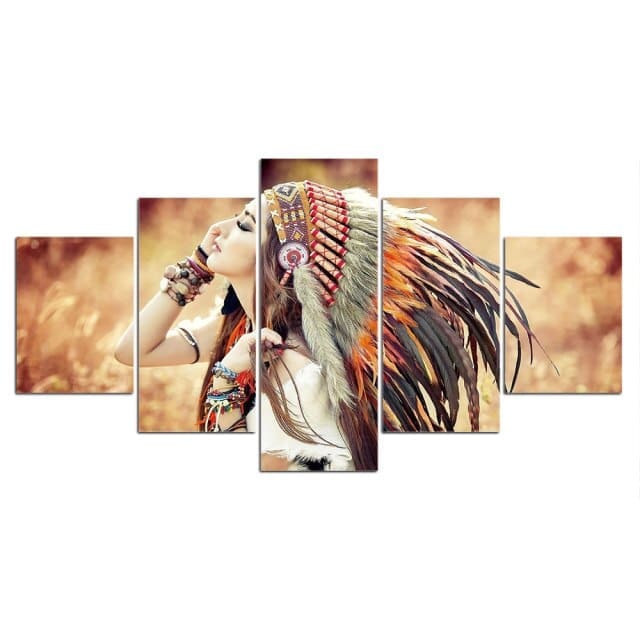 Embellissez vos espaces avec le charmant portrait de Fleur d’Automne, l’illustre Cheffe Indienne ! Les amoureux de l’environnement se retrouveront dans cette Œuvre Indienne Quintuple.