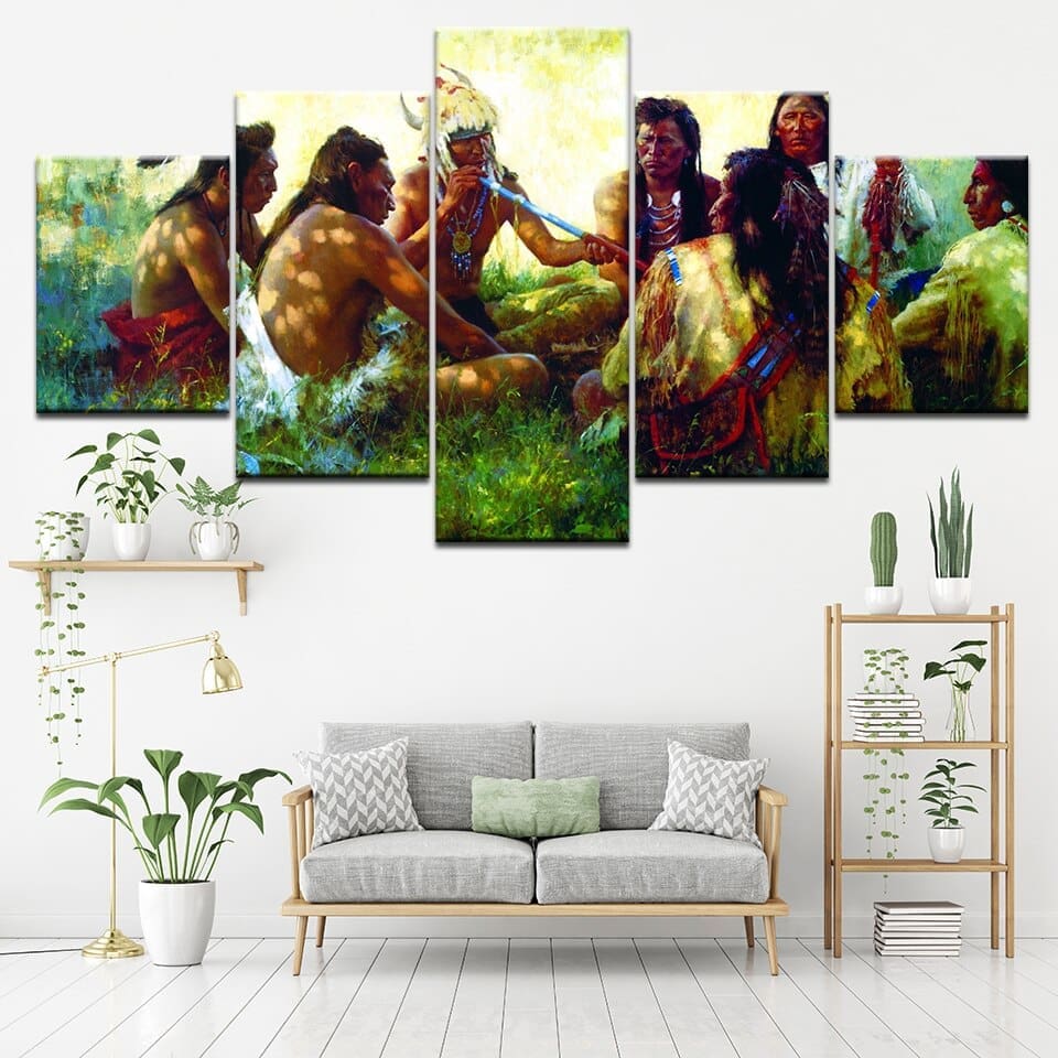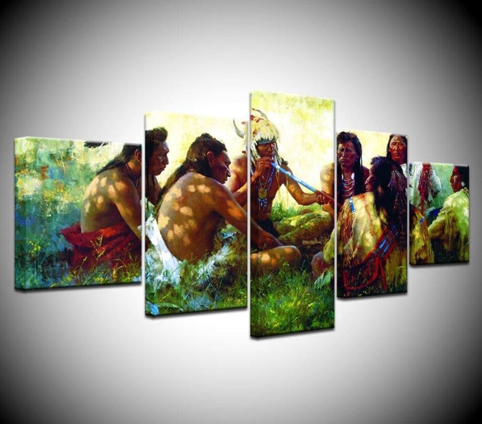 Passionnés de cultures autochtones ? Découvrez notre captivant Tableau des Guerriers Cheyennes en cinq panneaux.