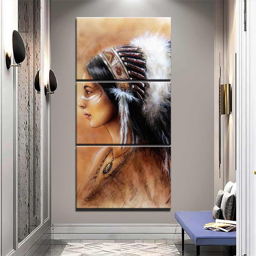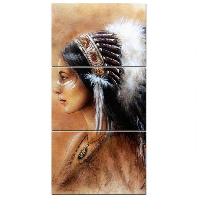 Sublimez votre hall d’entrée avec la splendeur du Triptyque Indien Petite Effigie Derrière la douceur d’un visage se cache la force d’une Leader Tribale insigne.